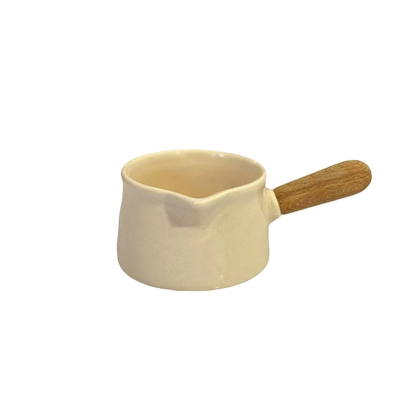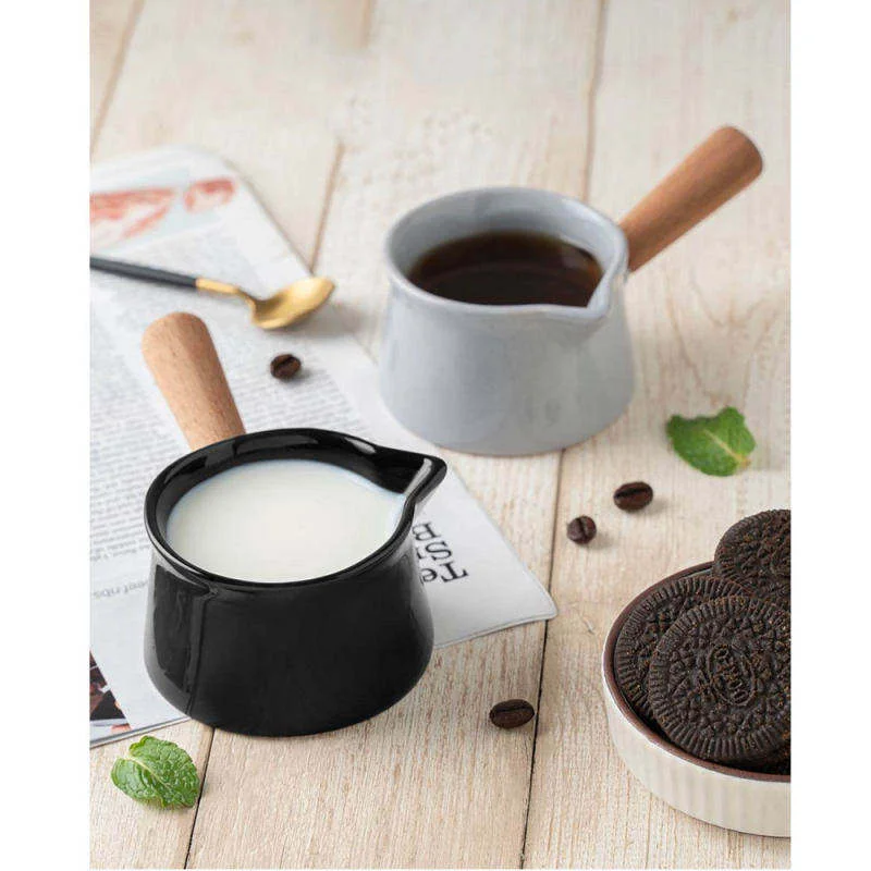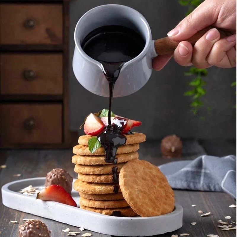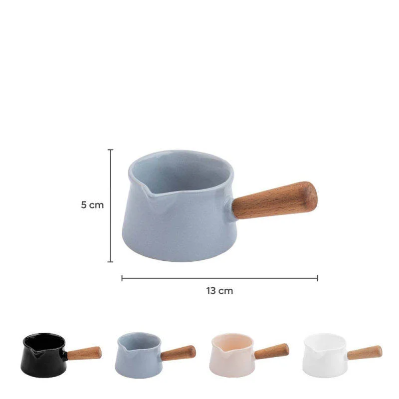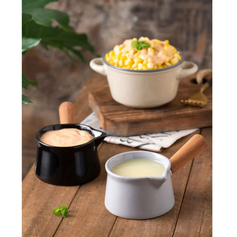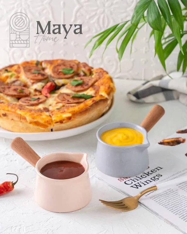 سس خوری مایا مدل سرامیکی با دسته چوبی یکی از کاربردی ترین انواع سس خوری های بازار است که نه تنها به عنوان سس خوری بلکه برای سرو انواع چاشنی ها مانند: روغن زیتون، آبلیمو، آب نارنج، آب غوره، انواع سس، دم کردن زعفران، سرو شکلات و شیر و و شکر در کنار چای و کیک و قهوه و … کاربرد دارد. این سس خوری ها از سرامیک بسیار با کیفیتی ساخته شده است و دسته چوبی آن سبب شده تا ظاهر بسیار جذابی برای میهمانی ها و مراسم شما داشته باشد.