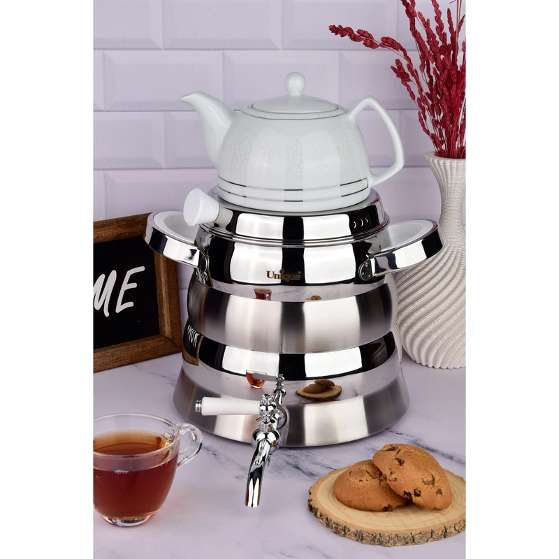 ست کتری و قوری یونیک جایگزین مناسبی برای تعویض کتری و قوری قدیمی آشپزخانهتان خواهد بود. استفاده از چینی در ساخت قوری به حفظ طعم و عطر اصلی چای و قهوه کمک بسزایی میکند. چینی علاوه بر حفظ عطروطعم نوشیدنی، در برابر گرما و حرارت غیرمستقیم پایداری بالایی دارد و گذشت زمان تاثیری خاصی بر کیفیت و ظاهر آن ندارد. استیل بهکاررفته در کتری علاوه بر مقاومت مطلوب در برابر گرما و حرارت، ضدزنگ است و وجود آب داخل محفظهی آن باعث زنگزدگیاش نخواهد شد.