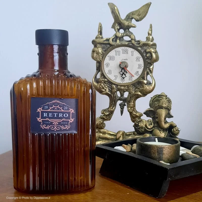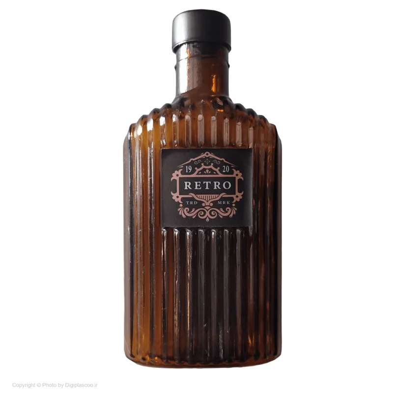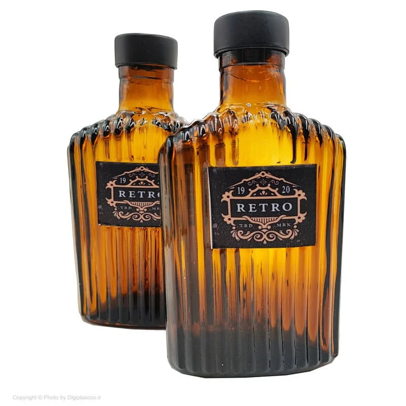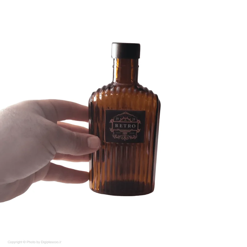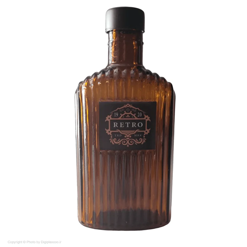 این بطری کتابی می باشد که در رنگ قهوه ای تیره و از جنس شیشه تولید شده است و دارای لیبل های متنوع و زیبا می باشد. گنجایش این بطری جیبی 300 میلی لیتر می باشد و درب آن پیچی است.