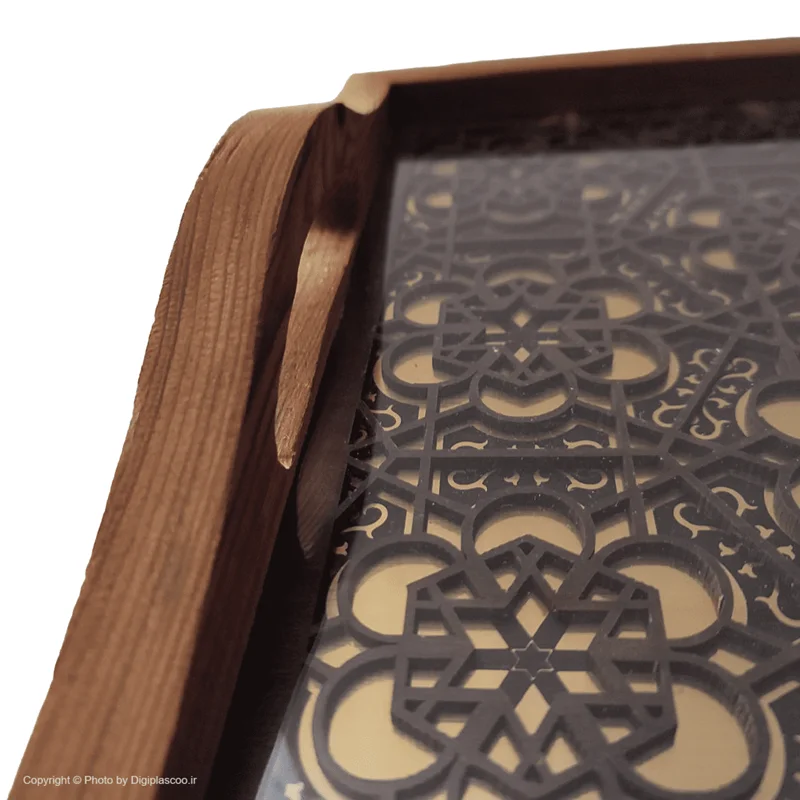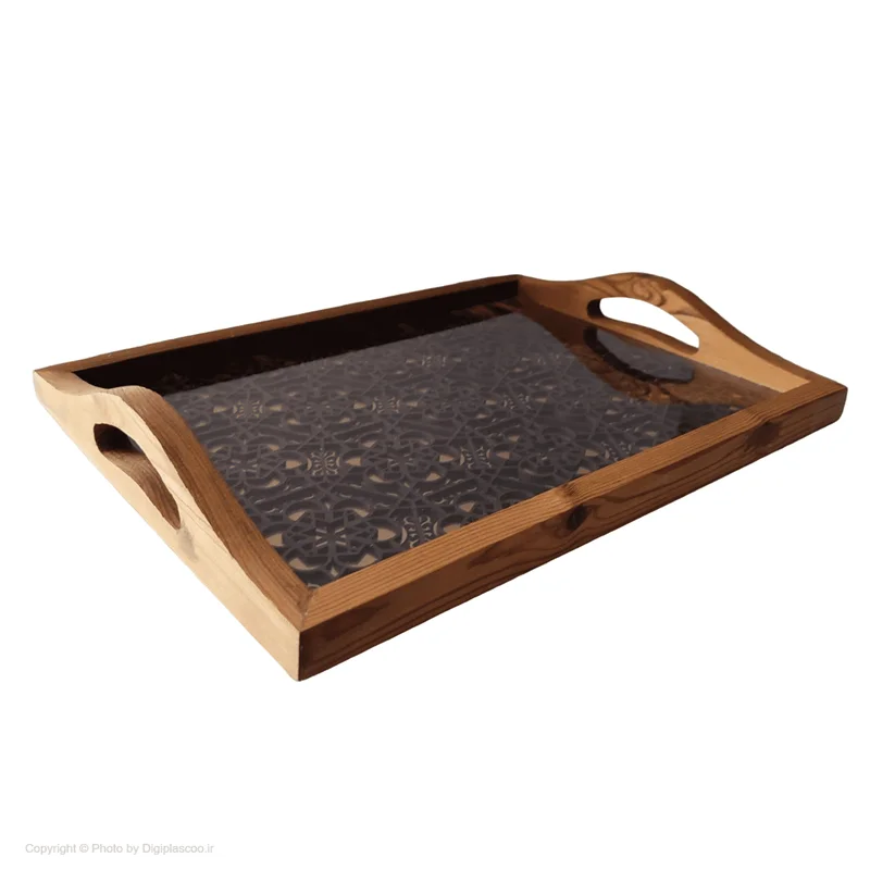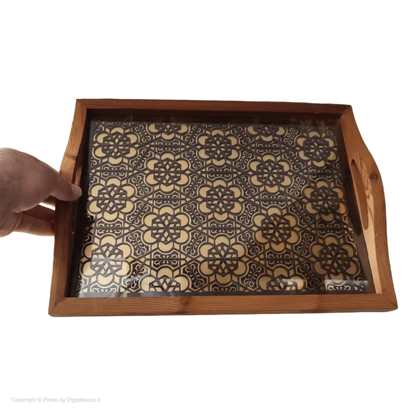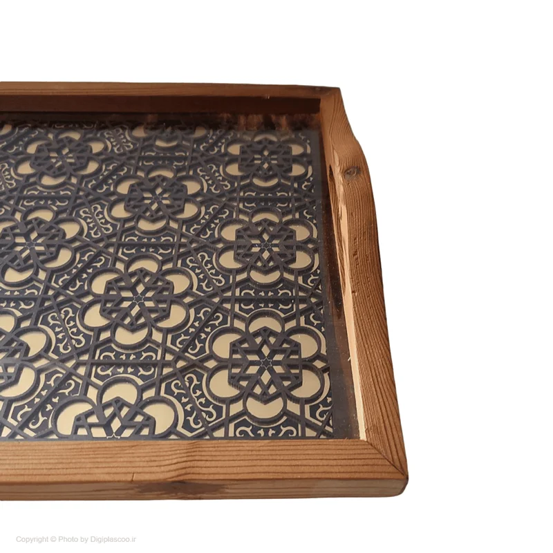 سینی معرق کاری به پذیرایی شما گرمی میبخشد و به شما اعتماد به نفس خوبی میدهد. سینی معرق با انواع چوبهای لایی طبیعی ساخته شده است. رنگ پوششی آن روغنی و زیر سینی یک شیشه برای زیبایی بیشتر گذاشته شده است.