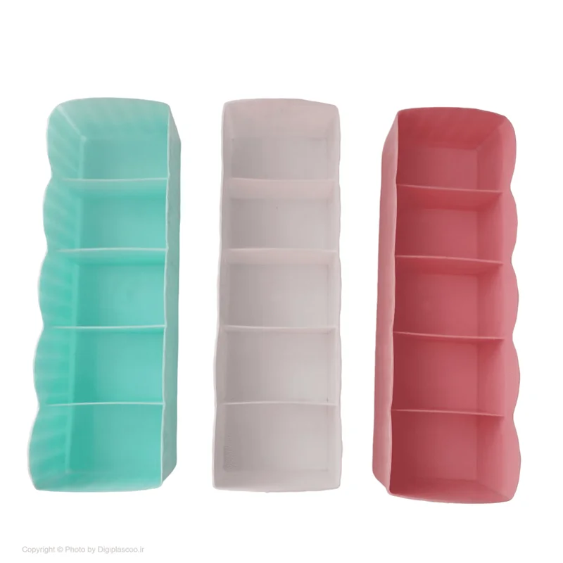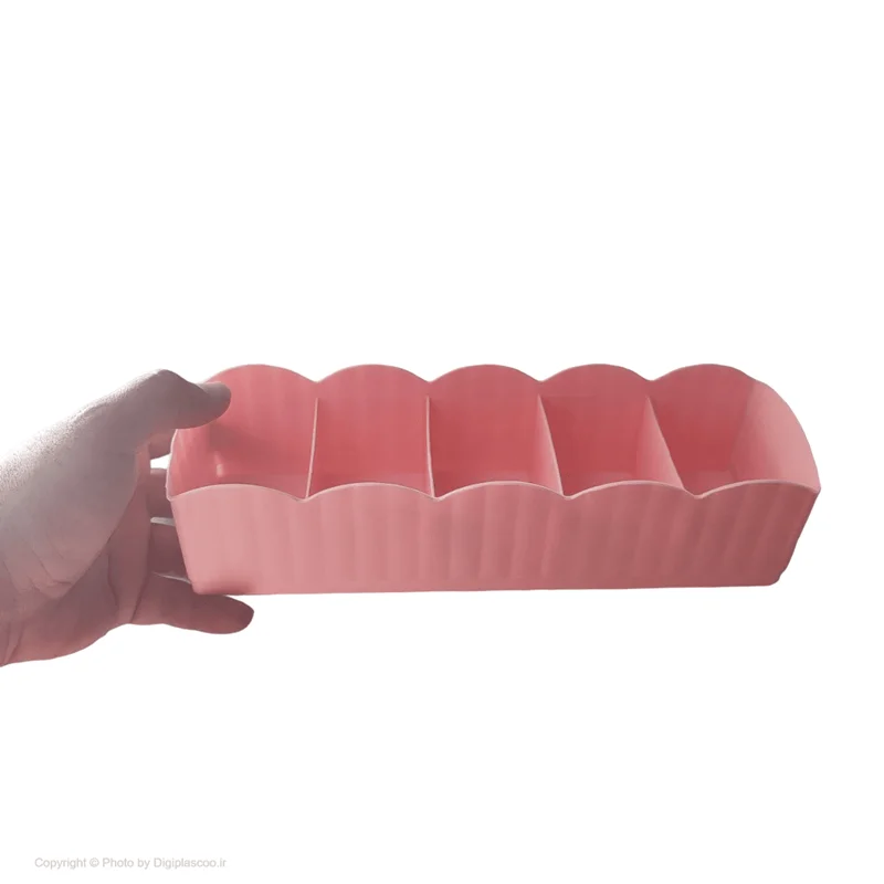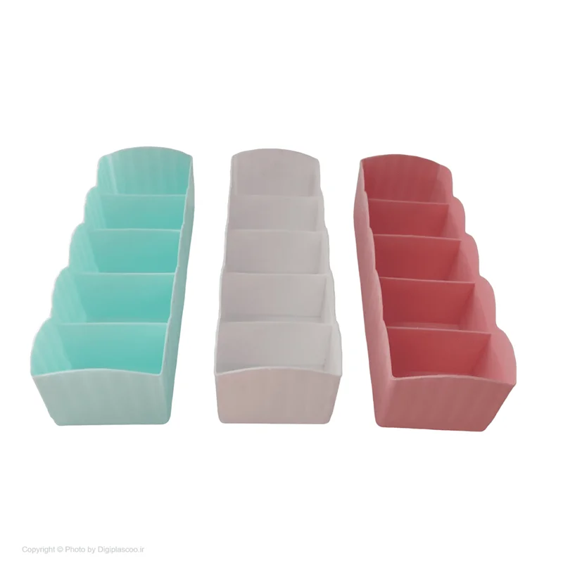 سبد جا جورابی ۵ خانه وسیلهای برای سازماندهی و نظم بخشیدن به جوراب، لباس زیر و …میباشد. این سبد پلاستیکی در هر کشو و کمدی جا میشود و بهم ریختگی وسایل کشوها را سامان داده و باعث زیبایی کشوها و مرتب شدن جورابها و لباسهای زیر میشود و جای مشخصی برای پیدا کردن و انتخاب جوراب هاست. همچنین از این سبد ها برای جمع کردن وسایل ریز کشو و لوازم آرایشی نیز می توان استفاده مناسب را داشت.