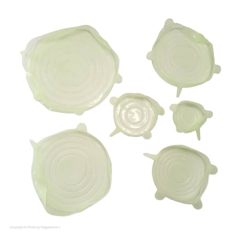 درپوش محافظ غذا از جنس رپوشهای سیلیکونی با مقاوت حرارتی و قابلیت انعطاف پذیری فوق العاده در 6 سایز متفاوت، تقریبا تمام ظروف آشپزخانه شما را پوشش میدهند. این محصول بر روی انواع ظروف با شکلهای مختلف به راحتی قرار گرفته و از تبادل هوای میان محیط و محتویات ظرف جلوگیری میکند تا طراوت و تازگی غذا، سالاد، سبزیجات، میوهها و … حفظ شود. همچنین قابل استفاده در فریزر و مایکروویو است. این محصول قابل شستشو است و می توان آن را در ماشین لباسشویی و ظرفشویی شست.