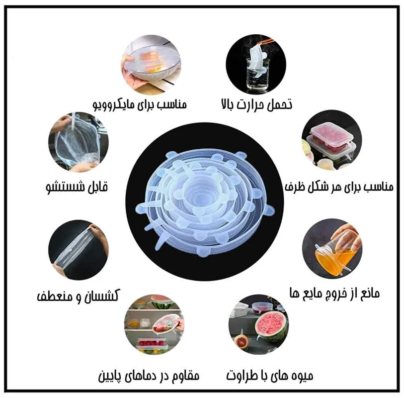 برای پوشش دهانه ظروف مختلف نظیر لیوان، بشقابهای لبهدار، کاسه، قابلمه و …