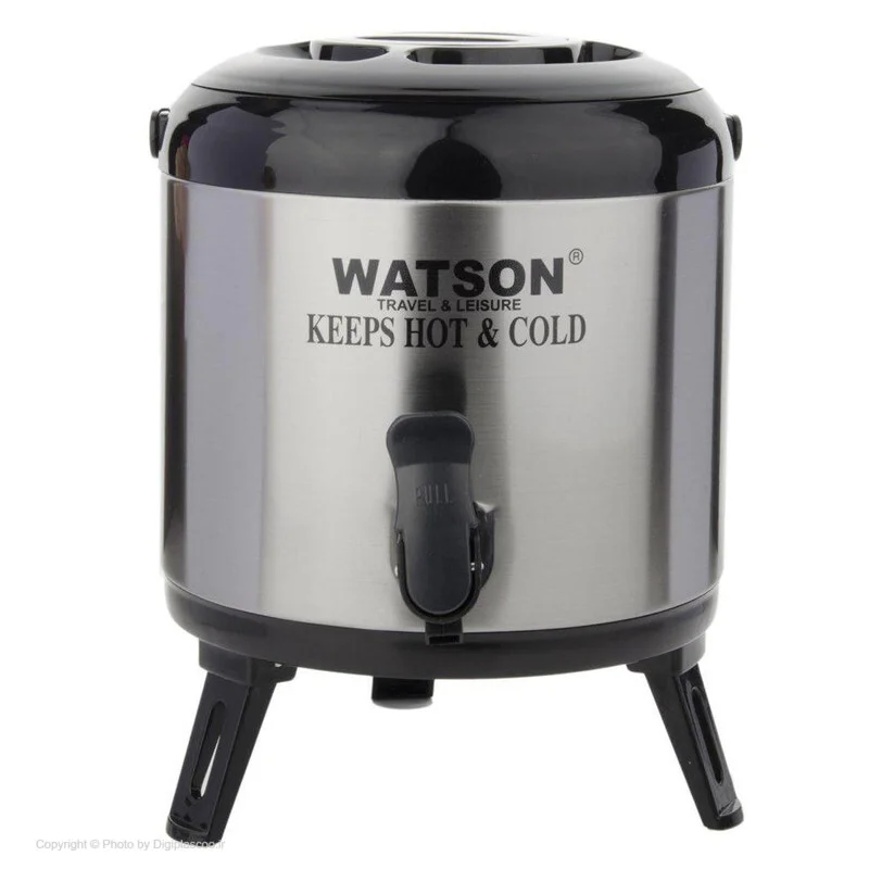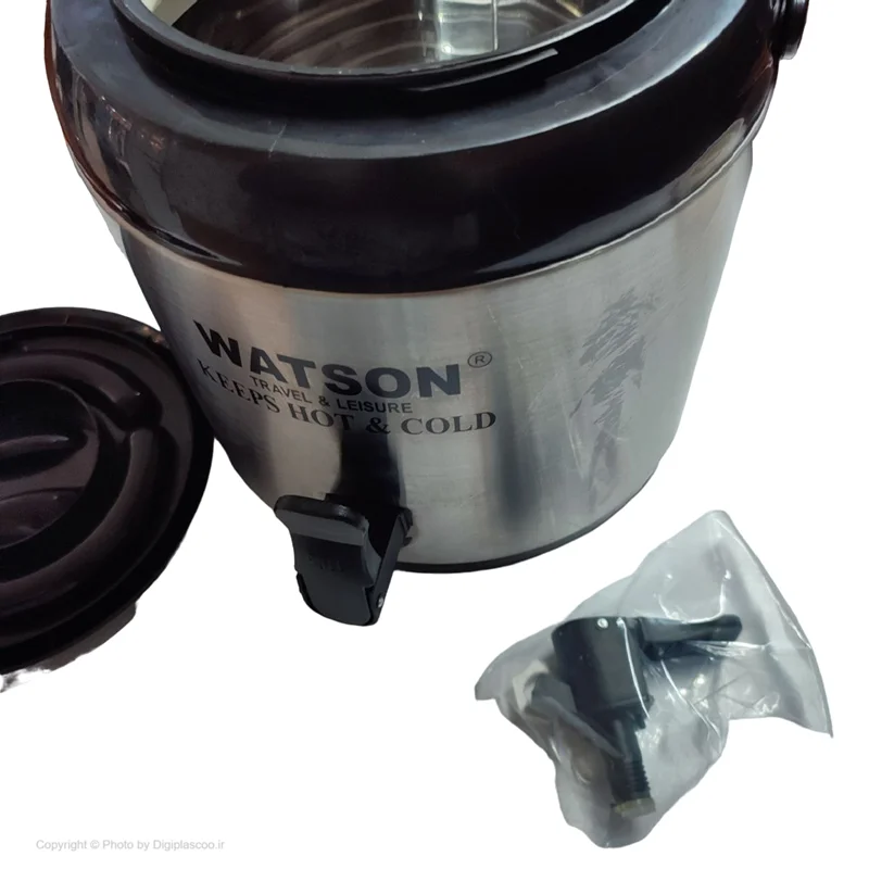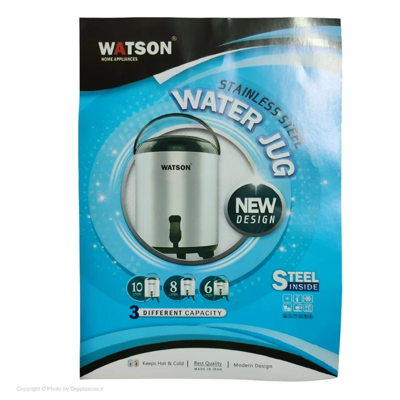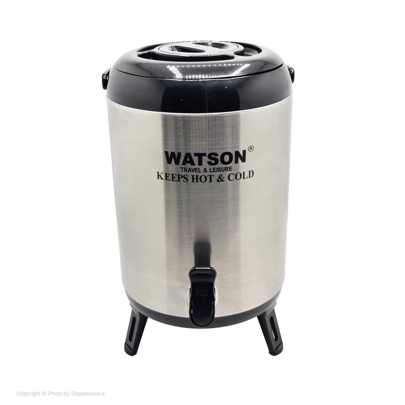 کلمن آب واتسون (WATSON) که قابلیت نگهداری آب سرد و گرم را در فصلهای مختلف دارد تولید شده از بهترین مواد اولیه میباشد که این امر جهت طول عمر بهداشت و کیفیت محصول بسیار حائز اهمیت میباشد کلمنهای آب واتسون با سایزهای مختلف انتخاب مناسبی جهت استفاده در منزل، مسافرت، پارکها و گردش روزانه میباشد. جنس بدنه استیل، جنس داخل مخزن نیز استیل ضد زنگ و ضد لک، دارای پایه های تاشو مناسب برای نگهداری آب گرم و سرد است. رنگ درب و پایه ها مشکی در حجم های متنوع که می توانید هنگام خرید سفارش دهید.