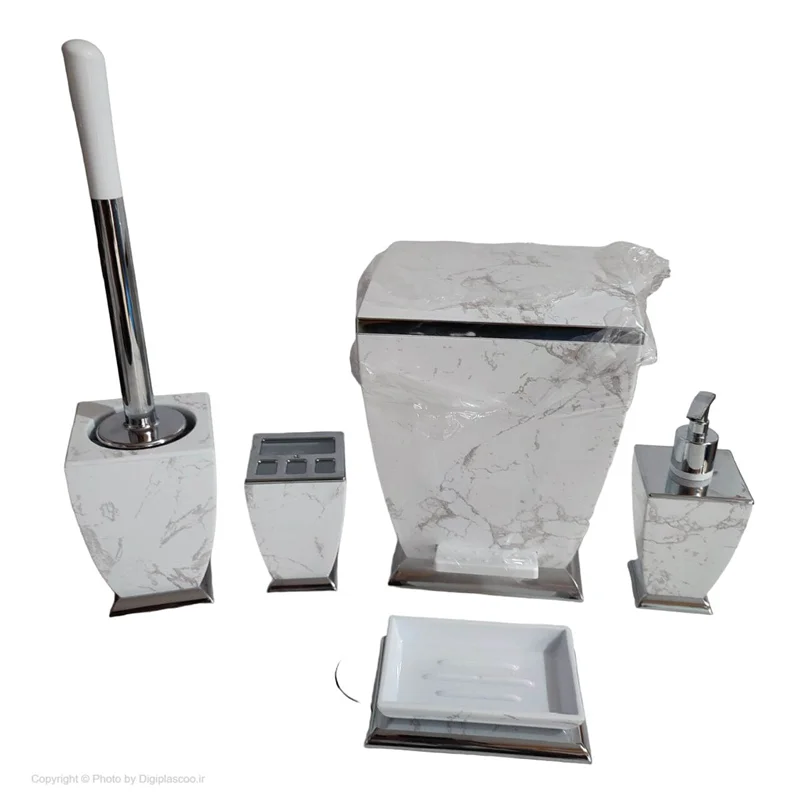 اگر قصد دارید برای تکمیل لوازم موردنیازتان در دستشویی یا سرویس بهداشتی یک ست زیبا و باکیفیت خریداری کنید، ست سرویس بهداشتی 6 پارچه مدل ماربل یکی از بهترین گزینههاست. این ست دوستداشتنی و کاربردی یک عدد جاصابونی، یک عدد پمپ مایع، سطل زباله، برس توالت شویی، لیوان و یک عدد جامسواکی دارد. با قرار دادن این لوازم در محیط سرویس بهداشتی، دکوراسیون این فضای شخصی، زیباتر و هماهنگتر خواهد شد.