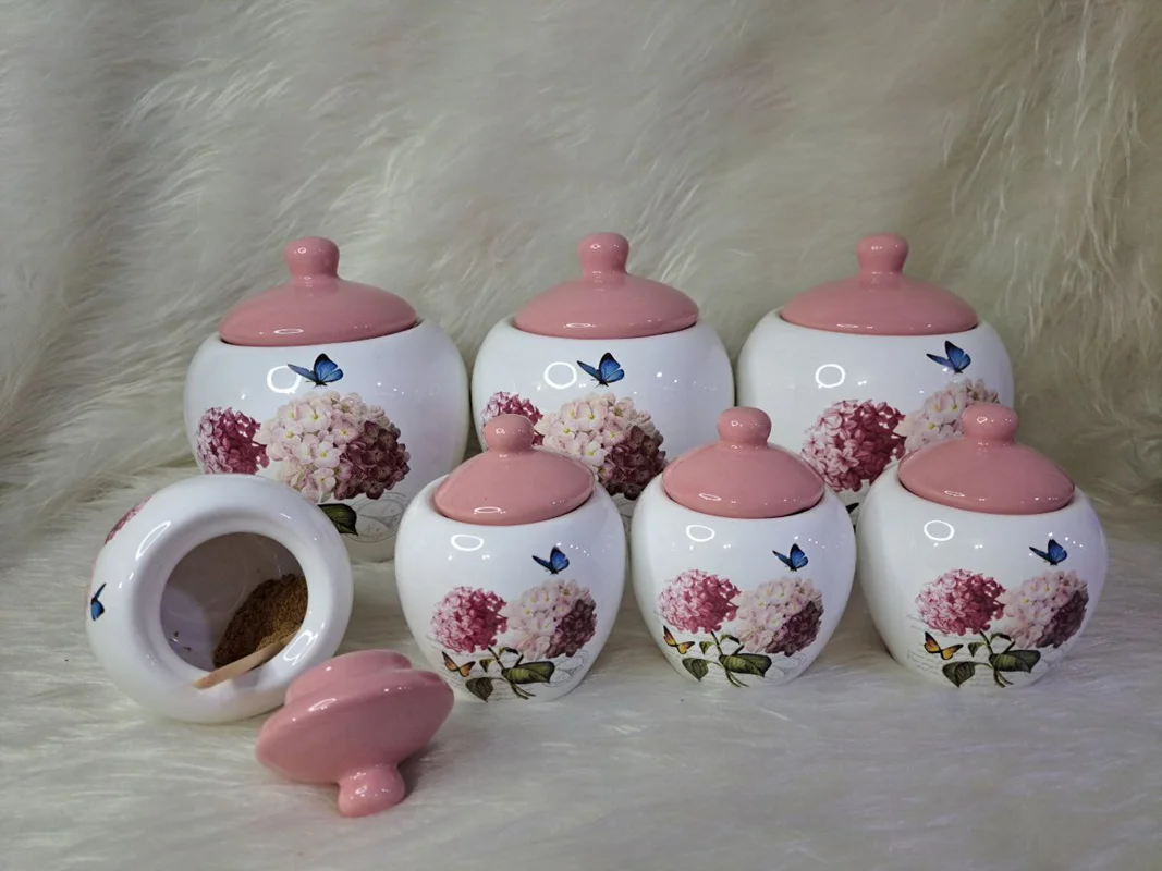 سرویس پاسماوری 7 پارچه طرح گل در دو رنگ، شامل 3 بانکه بزرگ با ابعاد جاادویه ها: قطر کفه ۶سانتی متر، پهن ترین قسمت کار ۹سانتی متر و قدکار ۱۱.۵ سانتی متر و 4 بانکه کوچک با ابعاد قطر کفه ۸.۵ سانتی متر، پهن ترین قسمت کار ۱۳.۵ سانتی متر، قدکار ۱۷.۵ سانتی متر است. طراحی و ساخت این سرویس آشپزخانه از کیفیت و مقاومت بسیار بالایی برخوردار است.
