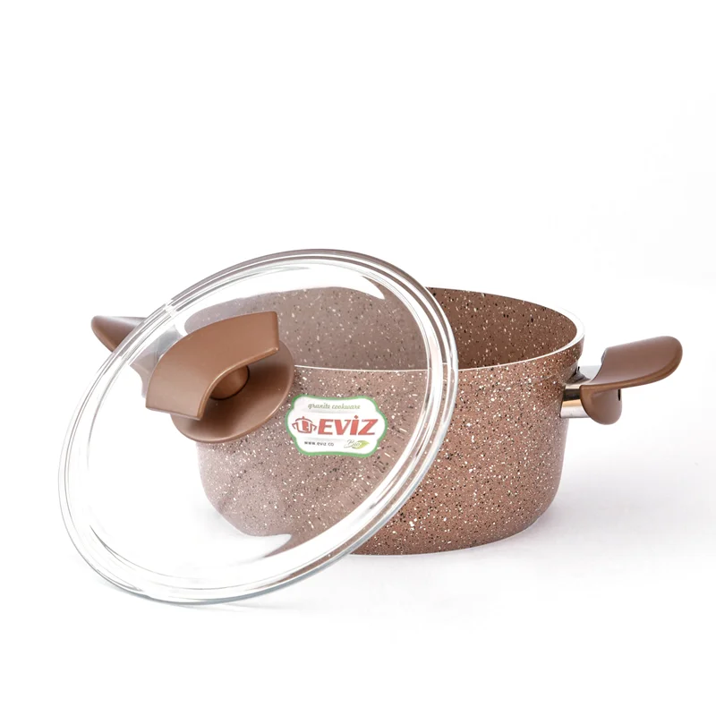 قابلمه پخت و پز اِویز از نظر کیفیت در سطح مطلوبی قرار دارد و انتخاب مناسبی برای طبخ غذاهای مختلف بهحساب میآید. دستههایی از جنس باکالیت و درپوشهایی از جنس شیشهای پیرکس دارد. نکته مهم که این قابلمه را نسبت به سایر ظروف متمایز میکند عدم وجود زوار استیل یا فلزی در دور درب ظرف میباشد که به جهت حفظ بهداشت و عدم تجمع میکروب در سطح بسیار مهم و حایز اهمیت میباشد. ظروف آشپزی اِویز به روش فورج و از آلیاژ ویژه با بکارگیری تکنولوژی روز دنیا برای اولین بار در ایران تولید میگردند، پوشش نچسب گرانیتی آلمانی به کار رفته در این سرویس ها از بهترین مواد اولیه استفاده شده است. بهداشتی بودن لبه درب تمام شیشه، سوپاپ اطمینان و تعبیه سه برجستگی در لبههای پیرکس جهت خروج بخار، دارا بودن نشان استاندارد Bio آلمان به عنوان تضمین حفاظت از محیطزیست، استحکام و سختی بسیار بالای محصول و عدم شکنندگی از سایر ویژگیهای این محصول میباشد.