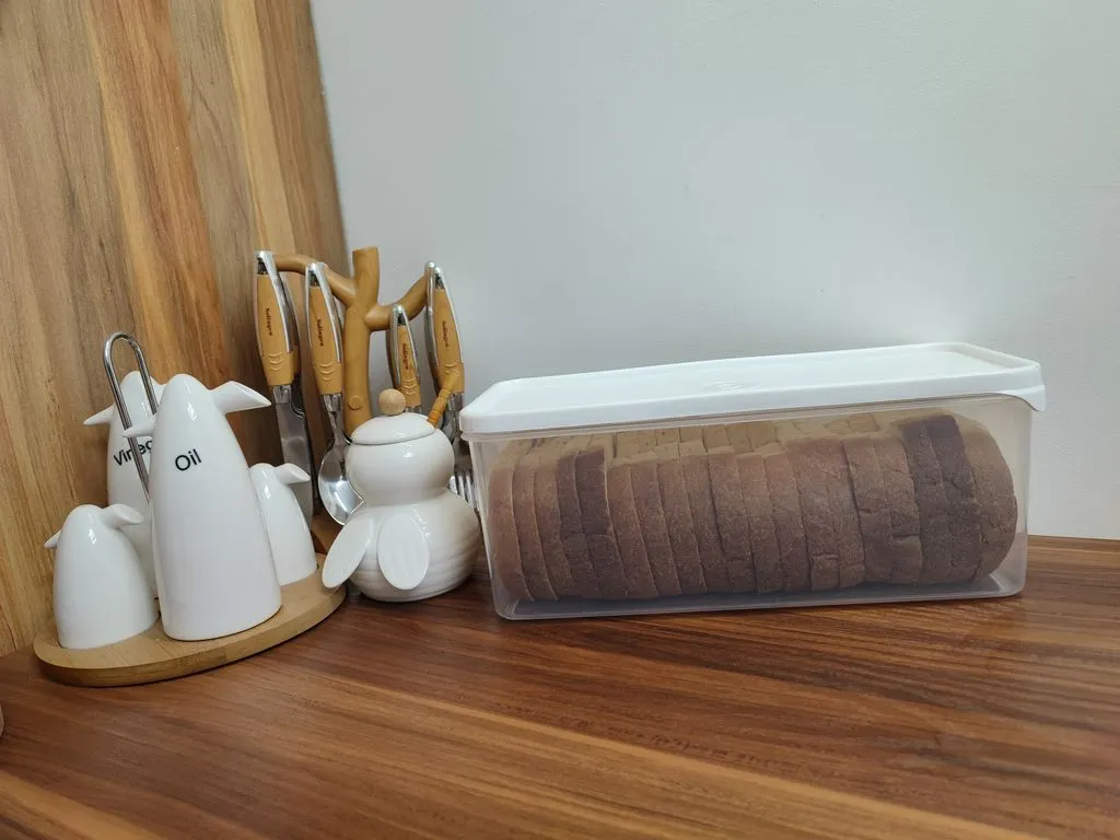 این ظرف از پلاستیک فشرده و باکیفیت ساخته شده که در برابر رطوبت و ضربه مقاوم است. درب فشاری آن بهراحتی باز و بسته میشود و مانع ورود هوا و گرد و غبار به داخل ظرف میگردد. ابعاد مناسب برای نگهداری نان تست باعث میشود نانها له نشوند و ظاهرشان حفظ شود. طراحی ساده و رنگهای ملایم آن با اکثر دکورهای آشپزخانه هماهنگ است. این مدل برای نگهداری نان در یخچال، کابینت یا روی میز صبحانه بسیار مناسب بوده و بهراحتی قابل شستوشو با دست یا ماشین ظرفشویی است.