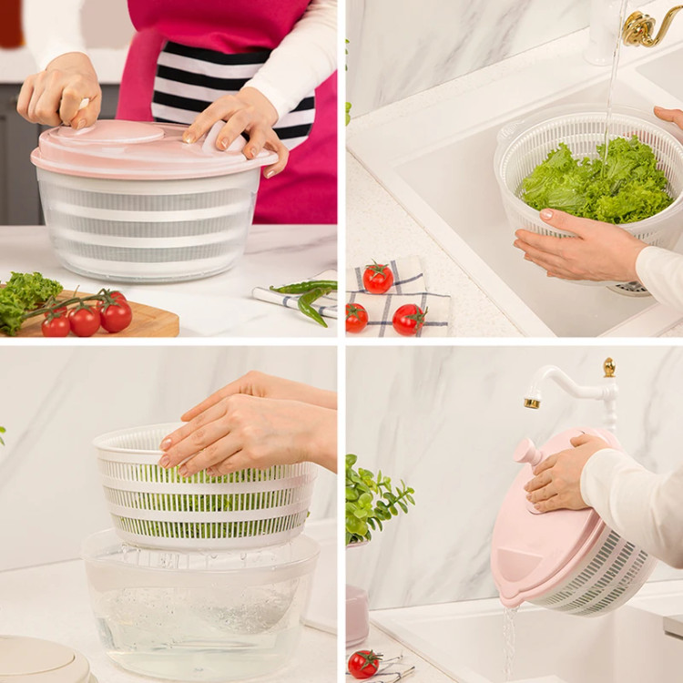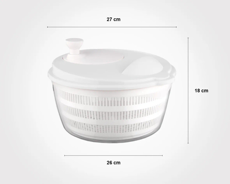این محصول شامل یک لگن، یک سبد داخلی و یک درب با دسته چرخشی است. با قرار دادن سبزی شستهشده در سبد و چرخاندن دسته، آب اضافی با نیروی گریز از مرکز از سبزی جدا شده و در کف لگن جمع میشود. این مکانیزم مشابه خشککن ماشین لباسشویی عمل میکند و باعث میشود سبزیها بدون آسیبدیدگی و در مدت کوتاه آماده مصرف یا نگهداری شوند.
