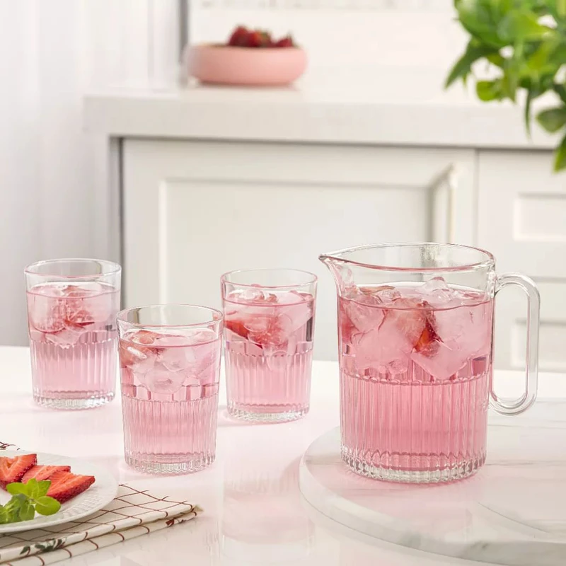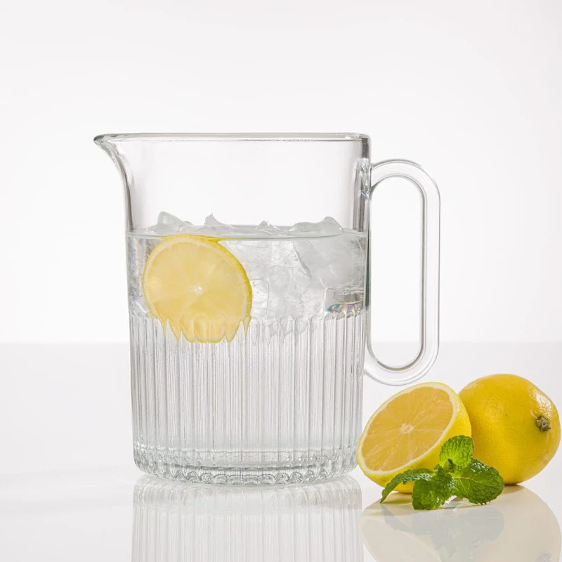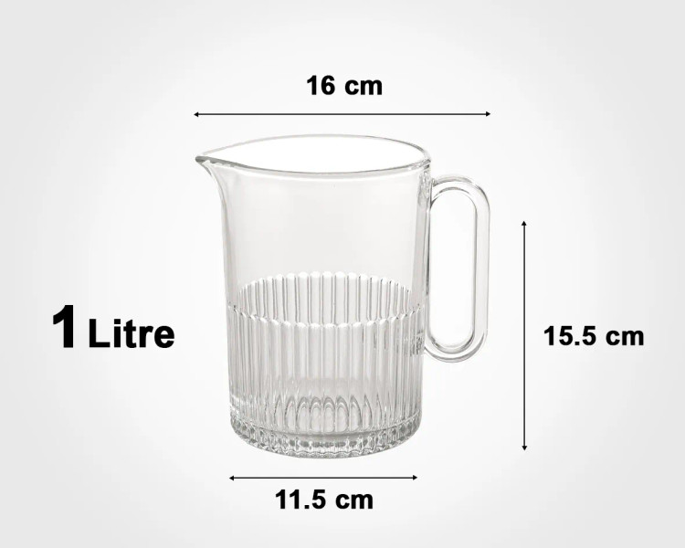 این پارچ با ظرفیت ۱ لیتر و ابعاد ۱۵.۵×۱۴×۱۵.۵ سانتیمتر، از شیشه شفاف و ضخیم ساخته شده که هم ظاهر مینیمال و مدرن دارد و هم در برابر ضربه و حرارت مقاومت خوبی نشان میدهد. شیارهای عمودی روی بدنه علاوه بر زیبایی، باعث کاهش لغزش در دست میشوند و دستهی ارگونومیک آن ریختن مایعات را آسانتر میکند. این محصول قابل شستوشو با دست و ماشین ظرفشویی است و بهدلیل طراحی ساده و شفاف، بهراحتی با سایر ظروف پذیرایی هماهنگ میشود.