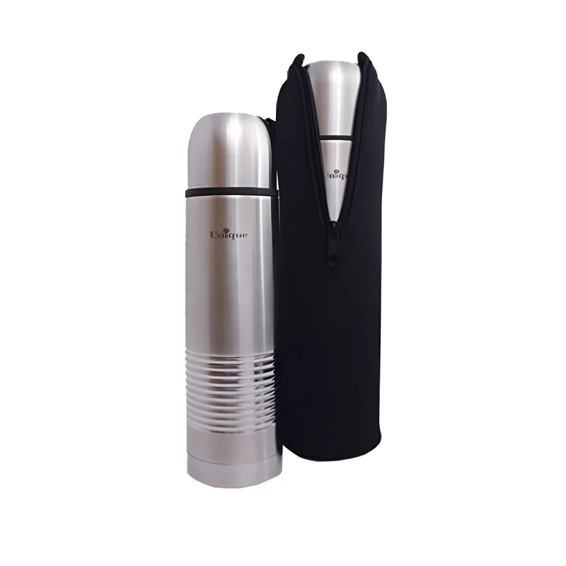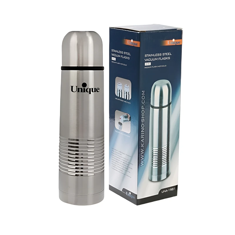 فلاسک قلمی استیل برند یونیک که از بدنه استیل مقاوم ساخته شده است. این محصول همراه با یک کاور زیپ دار عرضه میشود. این کاور علاوه بر محافظت بیشتر از بدنه به حفظ دمای مایع داخل فلاسک کمک می کند. مقاومت بدنه، نوع طراحی و قابلیت عایق بالا، این محصول رابرای استفاده روزمره و استفاده در سفر های کوتاه و کمپینگ و کوهنوردی مناسب کرده است. همچنین فلاسکهای یونیک قابلیت حفظ دمای مایع گرم را تا بیش از 12 ساعت داغ و مایع سرد تا 24 ساعت سرد دارد. درب محصول به صورت پیچی بسته میشود و مانع از نشت آب است. همچنین برای راحتی استفاده یک خروجی ضامن دار روی درب امکان خروج مایع را فراهم می کند. درپوش استیل این محصول قابلیت استفاده به عنوان لیوان را دارد.