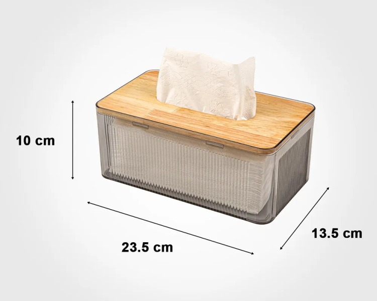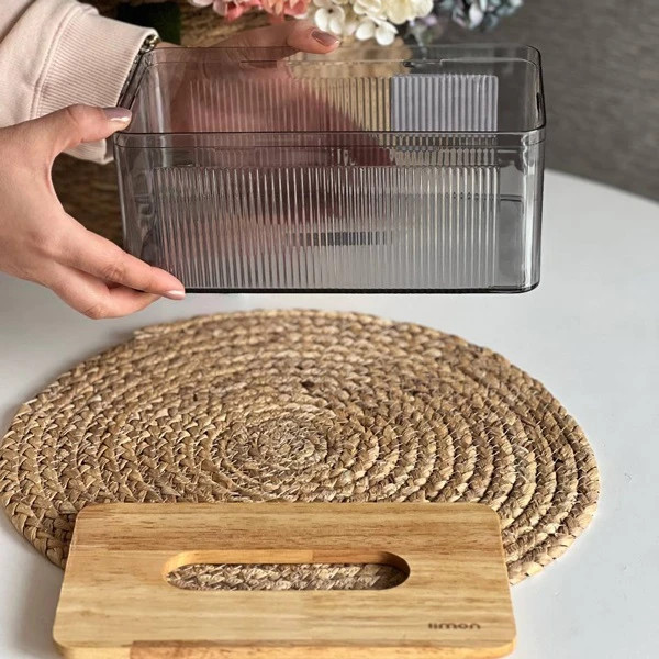 ◀ جعبه دستمال مستطیل رویه چوبی لیمون کد 2372 با ترکیب بدنه پلاستیکی مقاوم و رویه چوبی زیبا، یک انتخاب شیک و کاربردی برای نظمدهی به دستمالهای کاغذی است. ظاهر مینیمال و کیفیت ساخت خوب آن باعث میشود هم برای خانه و هم محیط کار مناسب باشد. طراحی کشویی و جایگذاری آسان دستمال، استفاده روزمره را راحتتر میکند و رویه چوبی جلوهای گرم و طبیعی به دکور میبخشد.