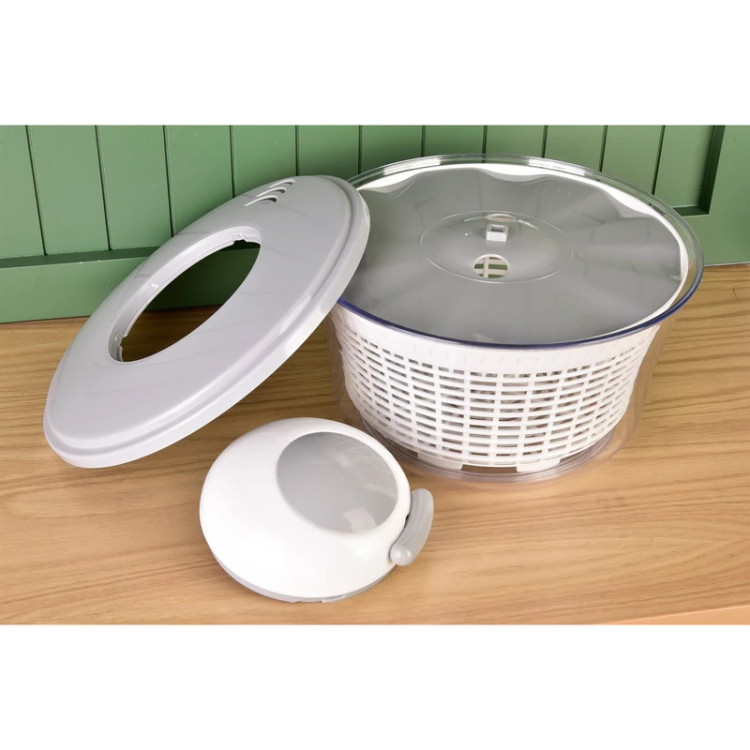 ▪️ اجزای محصول: شامل ظرف بیرونی شفاف (قابل استفاده به عنوان کاسه سرو)، سبد داخلی مشبک و درب مجهز به سیستم چرخش.