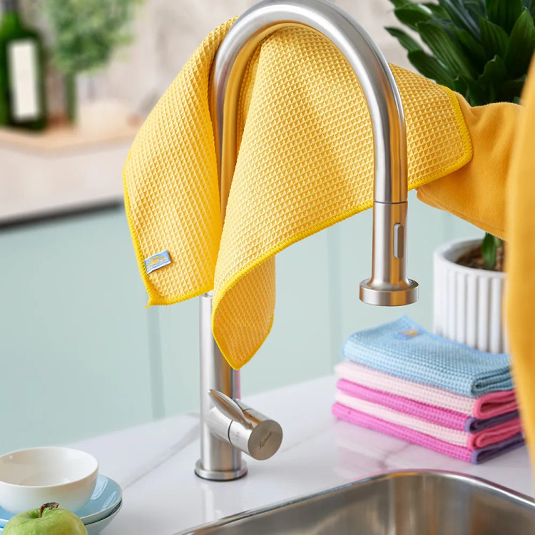 خشک کردن ظروف بعد از شستشو، اگر با دستمال نامناسب انجام شود، منجر به ایجاد لکههای سفید گچ و پرز روی ظروف میشود که تمام زحمت شما را هدر میدهد. دستمال میکروفایبر مهسان مدل ۲۰۱۴۴ با بهرهگیری از تکنولوژی الیاف نانو، به گونهای طراحی شده که قطرات آب را به سرعت در بافت خود حبس کرده و درخشش فوقالعادهای به ظروف شیشهای و استیل میبخشد. این دستمال به دلیل لطافت بالا، بهترین گزینه برای ظروف حساس و گرانقیمت است. برند مهسان با تولید این مدل، محصولی را عرضه کرده که علاوه بر قدرت جذب بینظیر، به راحتی شسته شده و خیلی سریع خشک میشود تا از تجمع باکتریها جلوگیری شود. این دستمال یک ابزار ضروری برای داشتن آشپزخانهای تمیز و ظروفی همیشه درخشان است.
