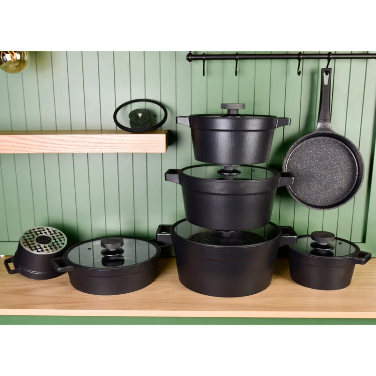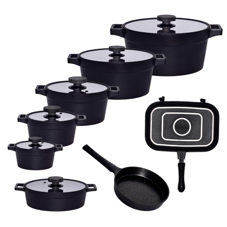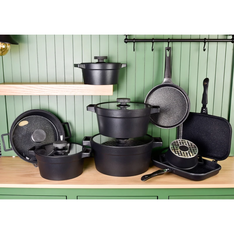 ▪️ مجموعهای کامل شامل انواع قابلمه در سایزهای کاربردی، تابه و ابزار آشپزی مورد نیاز