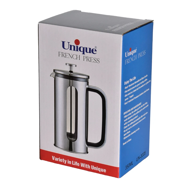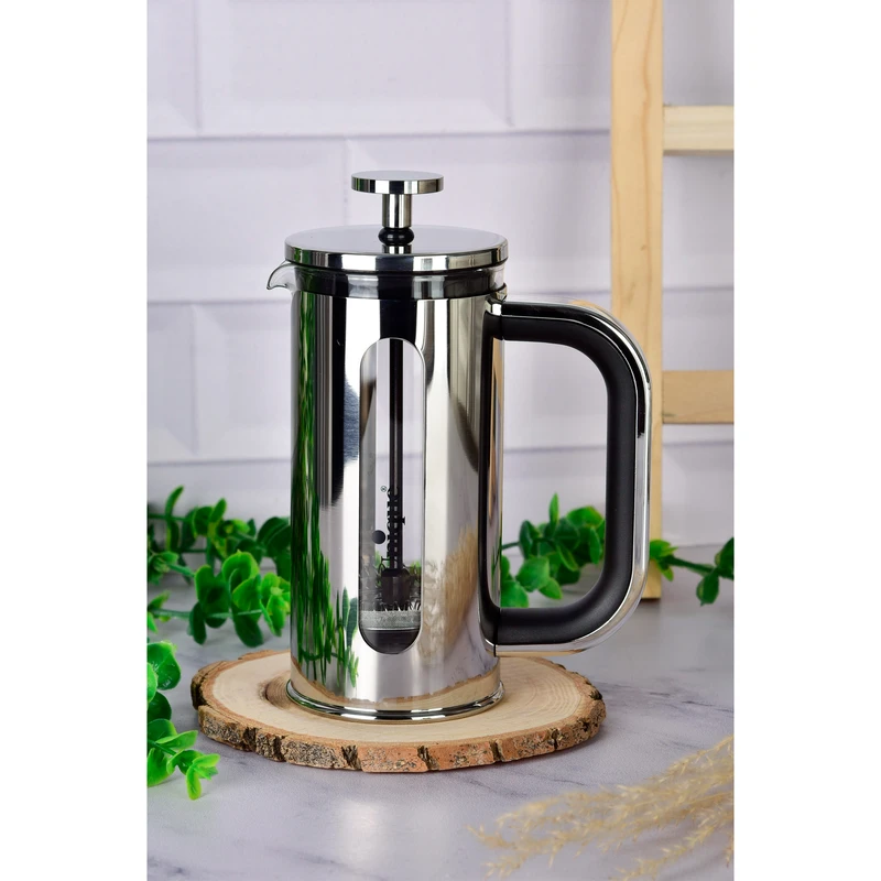 حتما نام فرنچ پرس را شنیدهاید. این دستگاه با صرف زمانی کوتاه یک لیوان قهوه خوشطعم و لذیذ را برای شما آماده خواهد کرد. درواقع فرنچ پرس همان قهوهساز دستی است که کار را برای شما آسان ساخته و بدون نیاز به برق میتوانید بهترین قهوه را آماده کنید. با بدنه ی پیرکس و طراحی زیبا در کوتاهترین زمان، یک لیوان قهوه با بهترین کیفیت را فراهم خواهد ساخت. این ظرف دارای گنجایش 350 میلی لیتر بوده و برای آماده کردن قهوه باید پودر قهوه را در ظرف ریخته و مقدار موردنیاز آب جوش به آن بیافزایید. دسته توری را به پایین فشار دهید و برای مدت 10 دقیقه ظرف را به همان حالت قرار دهید. بعد از گذشت 10 دقیقه قهوهی خوشطعم شما آماده است. با همین روش از این محصول نه تنها برای قهوه بلکه برای انواع دمنوش نیز می توانید استفاده کنید.