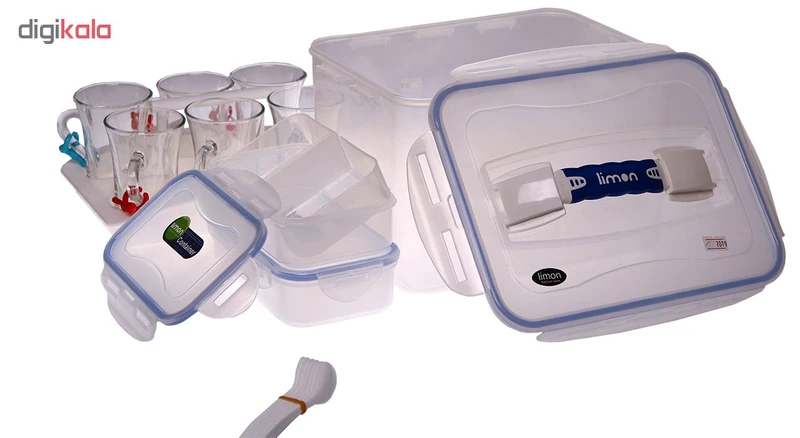 ست صبحانه خوری 6 نفره لیمون، مجموعهای بسیار کاربردی شامل 6 عدد لیوان و 6 عدد قاشق چای خوری و 1 سینی با جای جداگانه جهت لیوان است. همچنین 2 عدد ظرف دربدار زیبا و پرکاربرد از اجزای دیگر این مجموعه است که درون آنها میتوان قند وشکر و چای ریخت و در پیک نیک از آنها استفاده کرد تمامی این مجموعه ظروف داخل ظرف دردار بزرگی است که دستگیره زیبایی جهت حمل آسان آن روی در ظرف خودنمایی میکند.