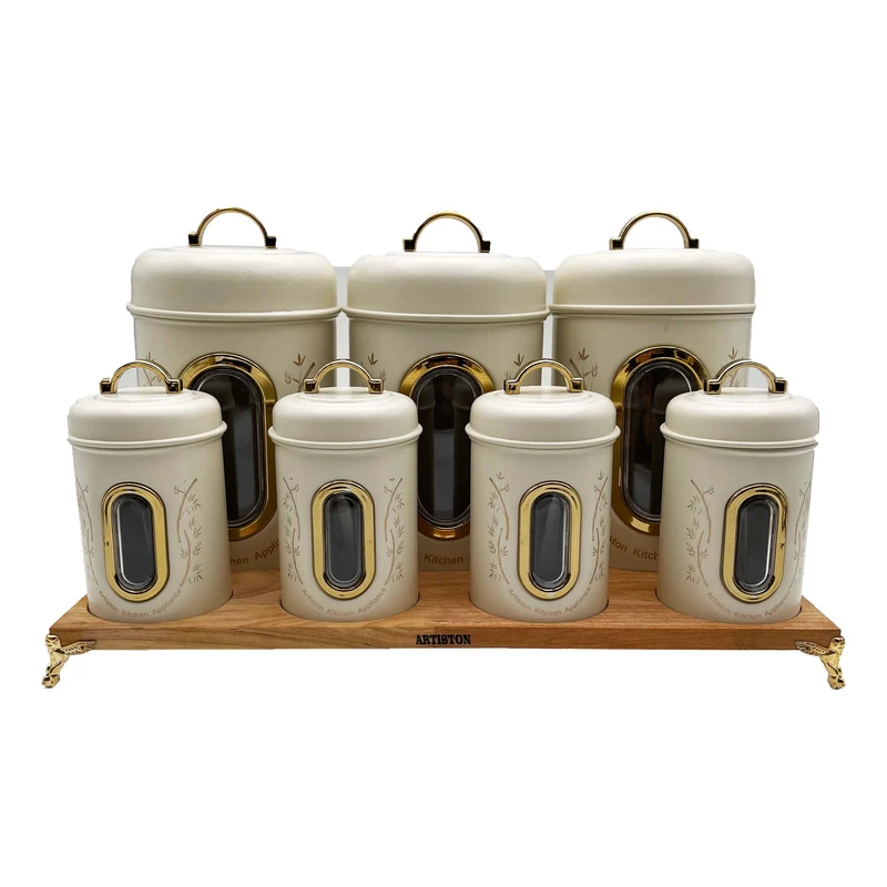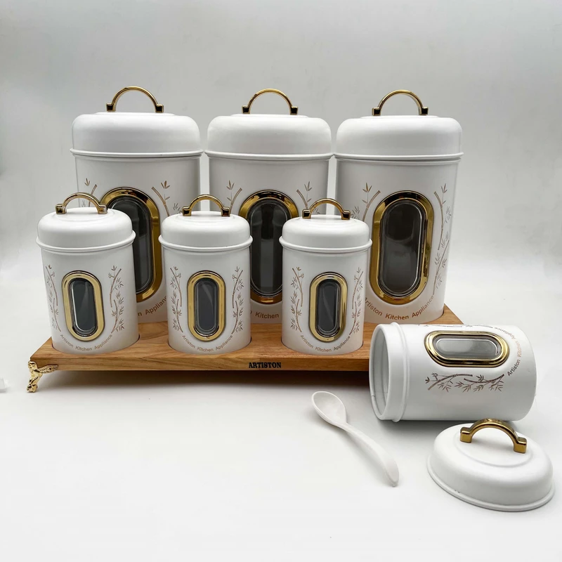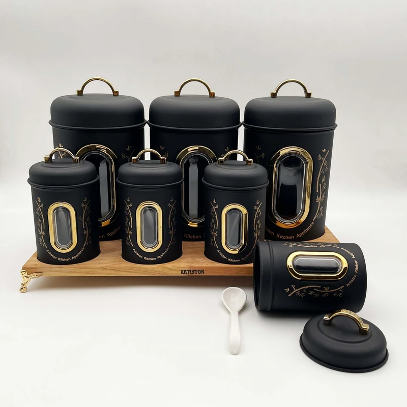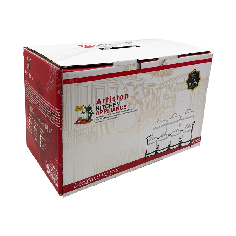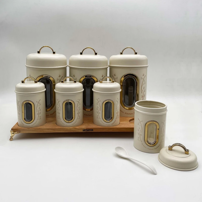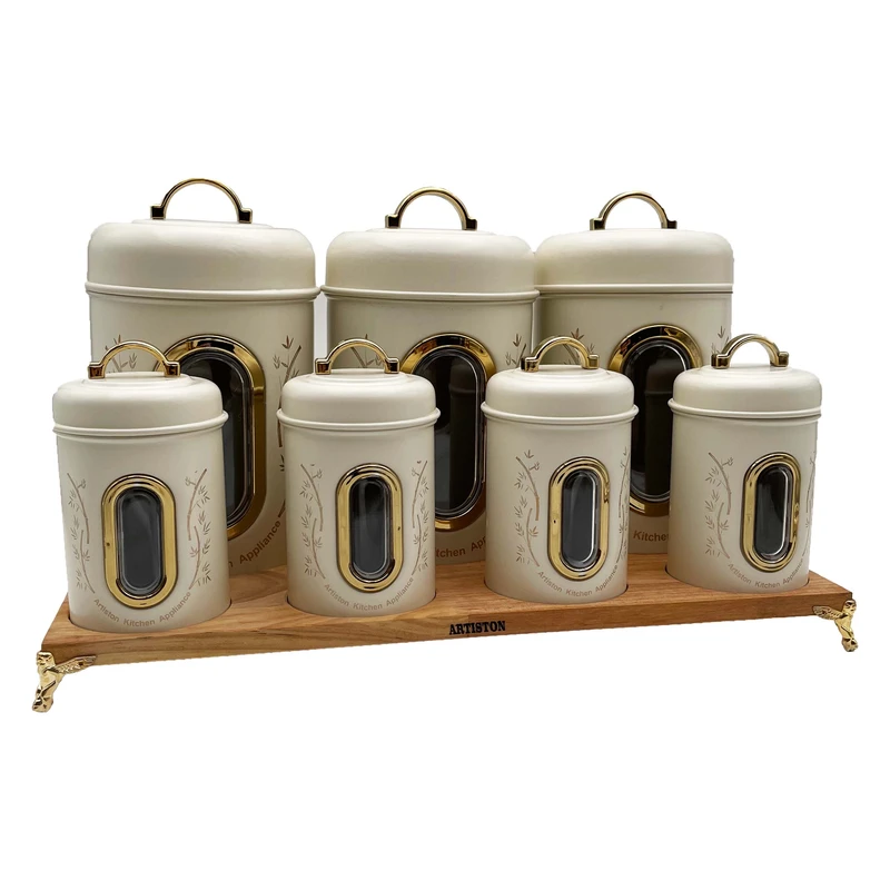 ست پاسماوری 8 پارچه زیبای ورونا محصولی جدید از برند آرتیستون است که جهت نظم و ترتیب دادن به ادویه جات با طراحی جلو پنجره ای در دسترس علاقمندان به آشپزی می باشد. این ست پاسماوری شامل 3 بانکه بزرگ به ابعاد 21*11.5 سانتی متر مناسب برای چای، نمک و... همچنین 4 جای ادویه به ابعاد 13*7 سانتی متر میباشد. جنس بانکه ها از نوع فولاد ST-st ۱۴ شرکت فولاد مبارکه اصفهان و پوشش بانکه ها از رنگ کوره ای الکترواستاتیک با درجه پخت ۲۲۰ درجه، بسیار مقاوم می باشد. این محصول قابل شستشو با دست و ماشین ظرفشویی می باشد، ولی بهتر است با آب ولرم و اسفنج شستشو دهید و سپس با دستمال خشک کنید. همچنین جهت افزایش طول عمر سینی چوبی هر از چند گاهی سطوح آن با روغن خوراکی آغشته شود.
