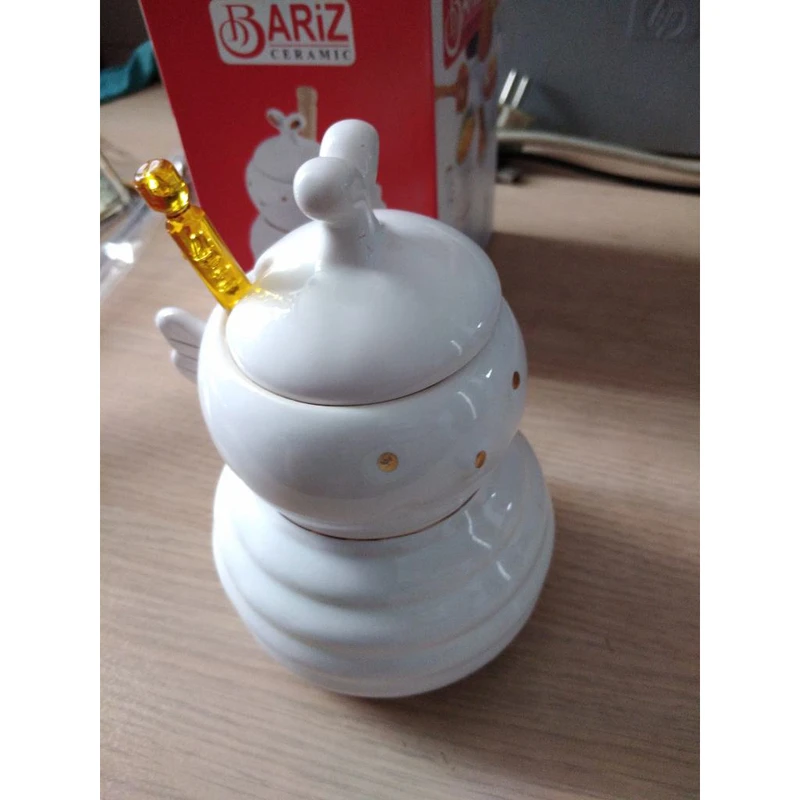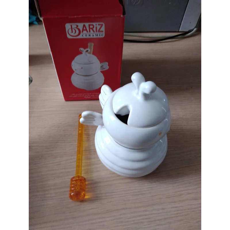 عسل خوری باریز سرامیکی طرح زنبور، طراحی شیک و منحصر به فرد این ظرف، نه تنها به زیبایی میز شما افزوده بلکه نگهداری و سرو عسل را آسانتر از همیشه میکند. ایدهآل برای پذیراییهای شگفتانگیز و هدیهای بینظیر برای علاقمندان به طعمهای طبیعی و اصیل.