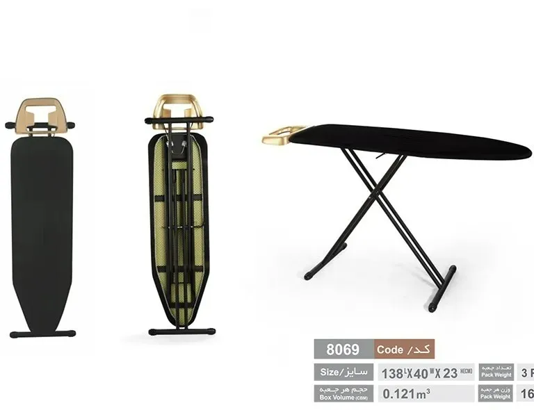 ارتفاع: ارتفاع میز اتو در حالت باز شده بین 60 تا 80 سانت از سطح زمین متغیر است
