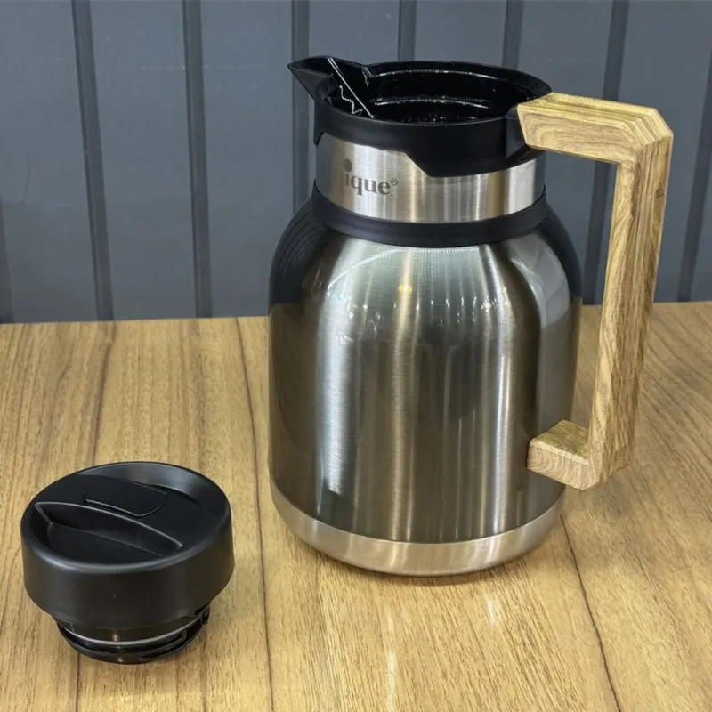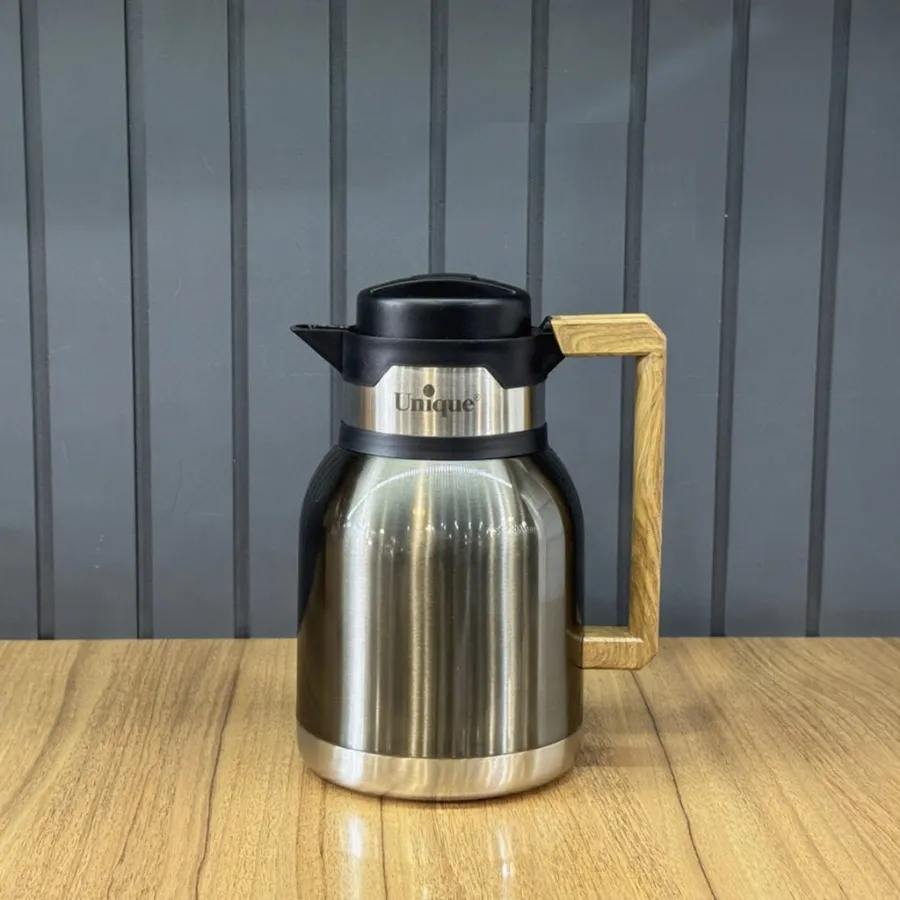 فلاسک استیل یونیک مدل دسته چوبی کد 1858 با گنجایش 1.5 لیتر، همراه همیشگی شما در سفرها و پیکنیکها! با طراحی زیبا و مدرن و دسته چوبی، گرمای نوشیدنیهای شما را تا ساعتها حفظ میکند. این فلاسک مقاوم و سبک، انتخابی بینظیر برای هر سلیقهای است.