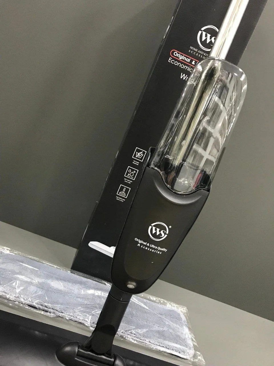 تی زمین شوی اسپری دار کد WS 945 با طراحی ارگونومی و سبک، نظافت خانه را به سطح جدیدی از نظافت منتقل می کند! جهت استفاده از این محصول ابتدا مخزن آب را که جدا کرده و آن را از آب پر کنید و سپس درب آن را بسته و مطمئن شوید آن را بدرستی در جای خود قرار داده اید تا در آنجا محکم قرار بگیرد. سپس می توانید بوسیله اسپری کردن سطح مورد نظر را مرطوب کنید و با پد با کیفیت میکروفایبر هر آلودگی را از سطح پاک کنید.