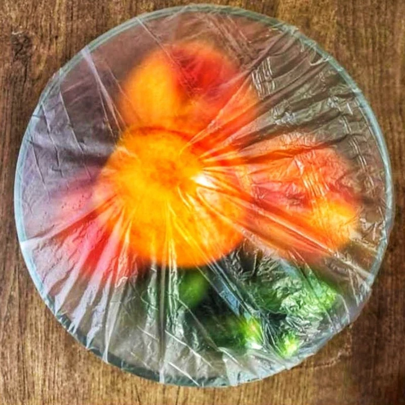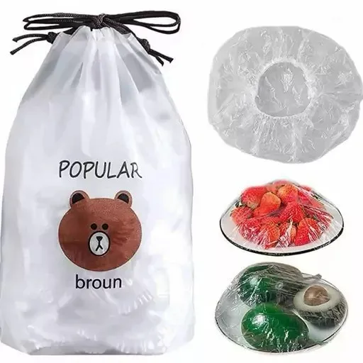 درپوش همه کاره مواد غذایی بسته 100 عددی جنس پلاستیکی با کش دور دوز شده مناسب استفاده به عنوان کلاه حمام ضد آب و کلاه رنگ مو و استفاده به عنوان درب ظروف برای ماندگاری بیشتر مواد غذایی و میوه. این درپوش همه کاره ظرف یکبار مصرف، جنسی بسیار انعطاف پذیر برای بستن انواع درب ها از جمله انواع کاسه، بشقاب، قابلمه و … دارد. در نظر داشته باشید که از این درپوشها میتوانید به عنوان کلاه آشپزی و کاور کفش نیز استفاده نمایید. انعطاف پذیری و محکم بودن از دیگر ویژگیهای این درپوش میباشد.