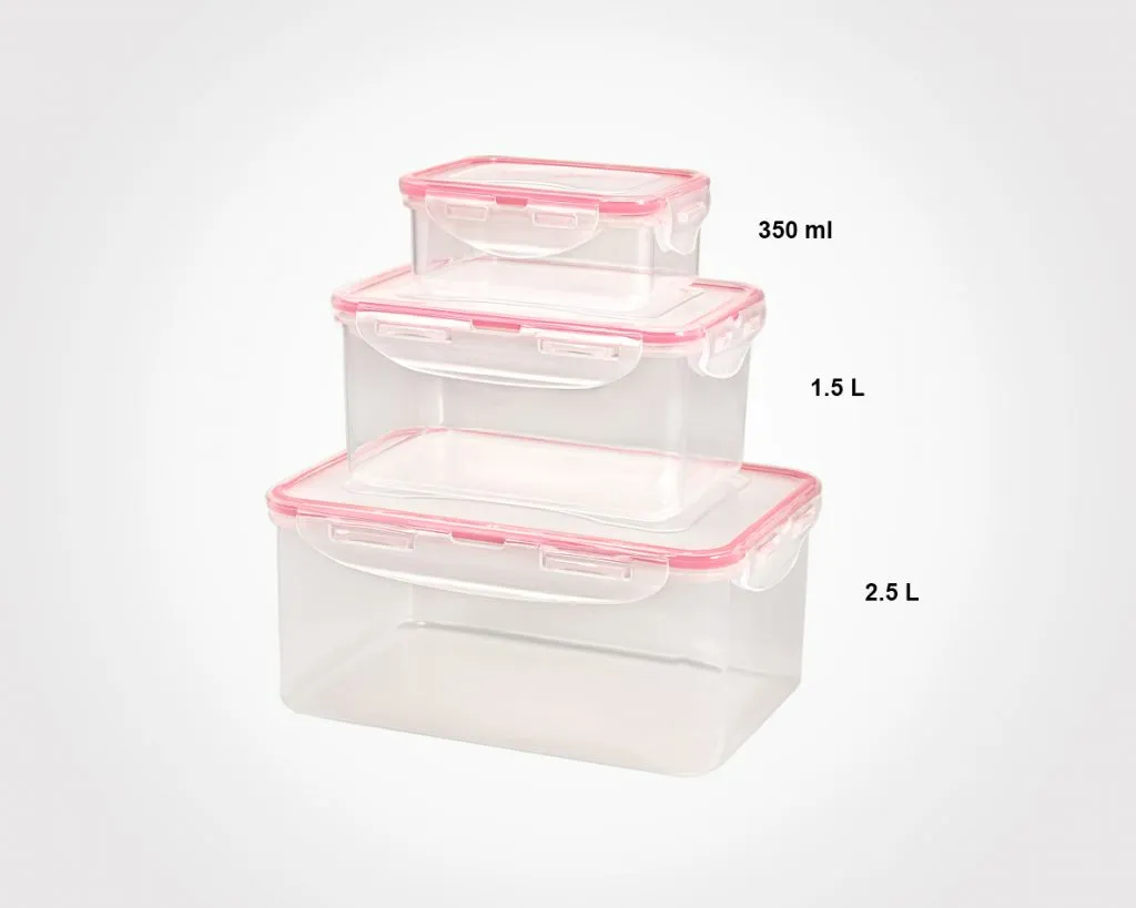 6 عدد (3 ظرف نگهدارنده با ابعاد موجود در عکس ها + 3 عدد درب آنها)