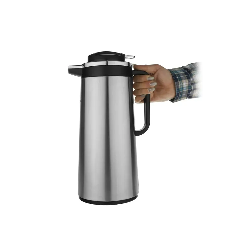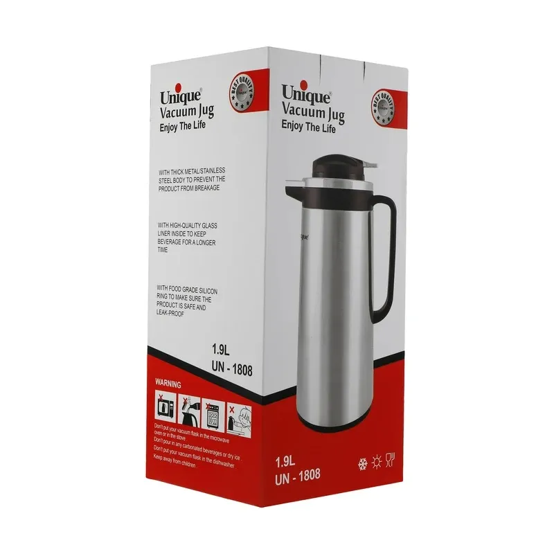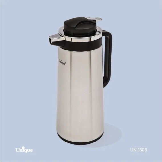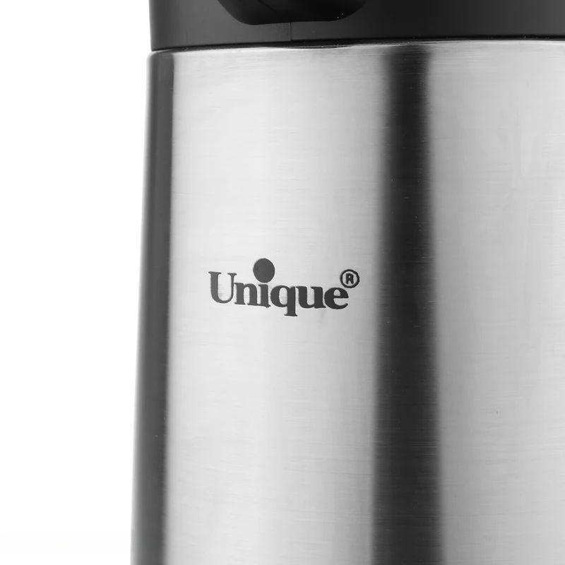 ◀ فلاسک برند «یونیک» مدل کد 1808 با ظرفیت حدود ۱٫۹ لیتر، گزینهای ایدهآل برای نگهداری و سرو نوشیدنیهای گرم یا سرد در جمعهای خانوادگی یا سفر است. بدنه بیرونی از جنس استیل ضدزنگ ساخته شده و جداره داخلی آن شیشهای است که در کنار درِ پیچی مطمئن، از ورود هوا یا نشت مایعات جلوگیری میکند؛ ارتفاع حدود ۳۵ سانتیمتر و وزن نزدیک به ۹۲۶ گرم، حمل آن را آسان نموده و با توجه به طراحی کاربرپسند، برای استفاده روزمره، پیکنیک یا محیط کار مناسب است.