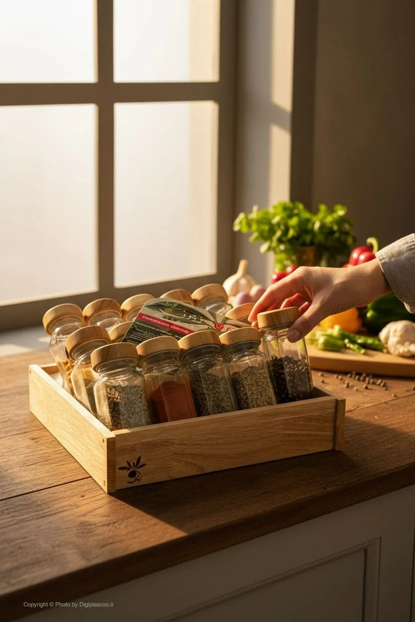 تجربهای متفاوت از آشپزی را با جا ادویه 16 پارچه زیتون مدل در لیزری کد 715 به آشپزخانه خود بیاورید! طراحی شیک و مدرن، همراه با دربهایی با نوشته های لیزری، نگهداری از انواع ادویهها را آسان و زیبا میکند. با این ست کامل، همیشه ادویههای مورد نیازتان در دسترس خواهند بود. انتخابی هوشمندانه برای هر آشپزخانه!