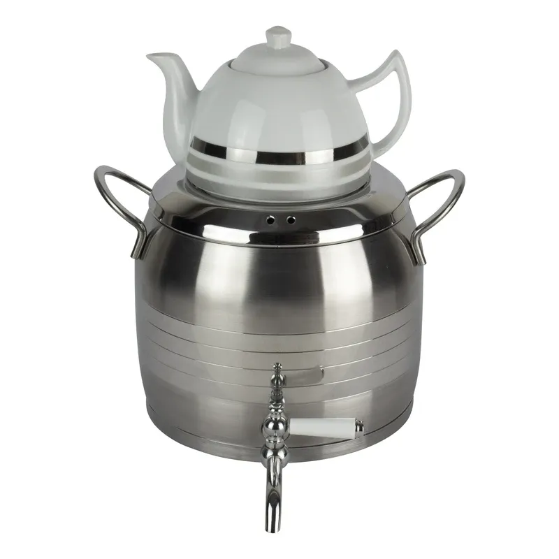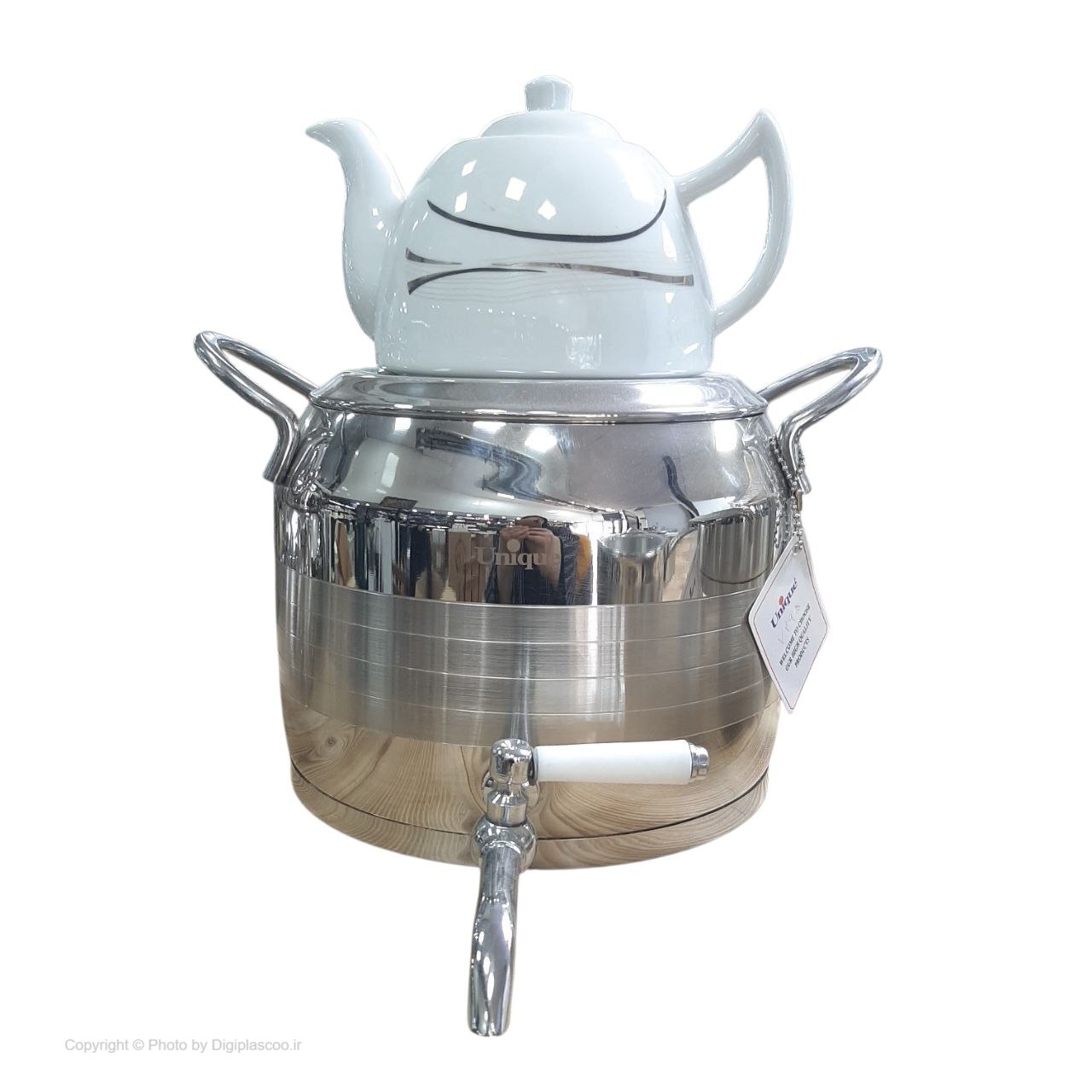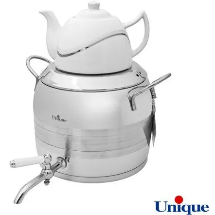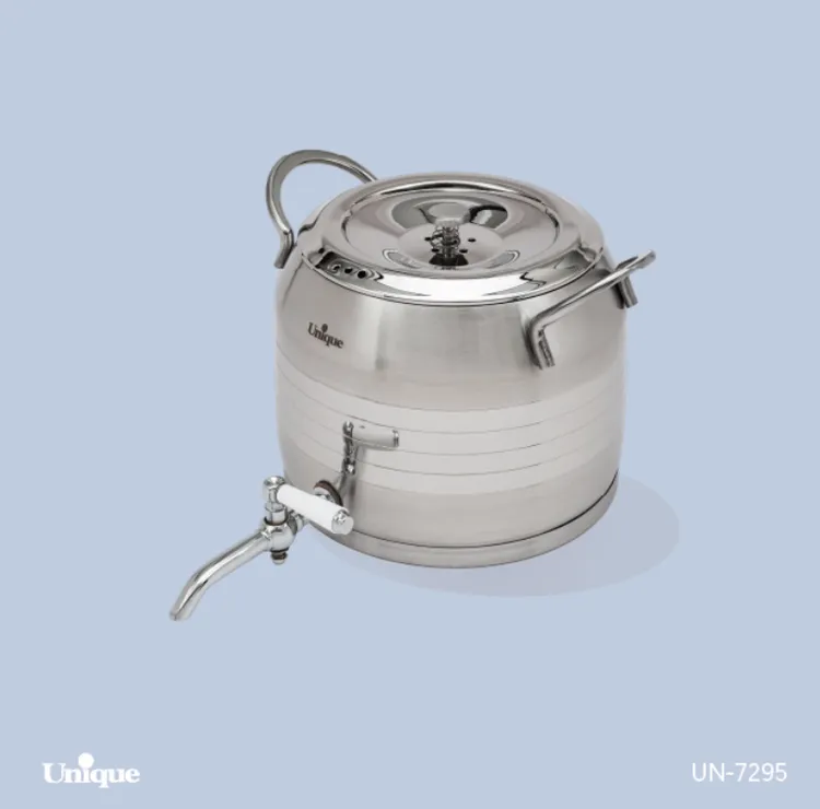 ◀ ست کتری و قوری یونیک مدل کد UN-7295 با ظرفیت تقریباً ۵ لیتر، گزینهای باکیفیت و کارا برای سرو چای در خانه یا مهمانیهاست. بدنه کتری از استیل ضدزنگ ساخته شده با کف دوجداره جهت پخش یکنواخت حرارت، و قوری همراه آن طراحی شده تا بتوانید با آسودگی و کارایی بالا نوشیدنی گرمتان را سرو کنید؛ با این انتخاب، فضای آشپزخانهتان ارتقاء مییابد و تجربه چاینوشی هم سادهتر و مرتبتر میشود.
