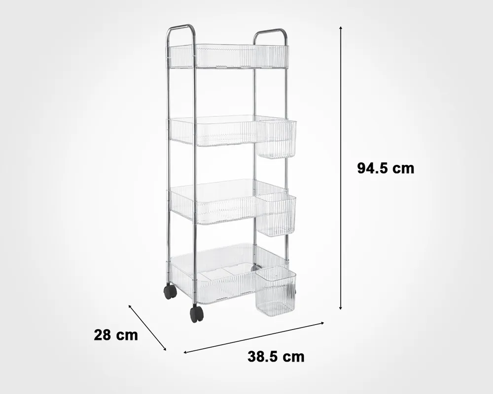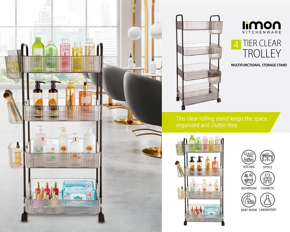 این ترولی چهار طبقه کوچک لیمون با طبقات اکریلیک شفاف و محکم، راهحلی کاربردی برای مرتب نگه داشتن لوازم روزمره در فضاهای نه چندان بزرگ است. ساختار فلزی مقاوم آن دوام خوبی در محیطهای مرطوب فراهم میکند و چرخهای روانش حرکت آسان را بدون نیاز به بلند کردن ممکن میسازد. ظرفیت مناسب طبقات همراه با ارتفاع متعادل، دسترسی سریع به وسایل را ساده میکند و با ظاهر مینیمال و شفافش، حس نظم پایدار و آرامش بیشتری به محیط روزانهتان میبخشد.