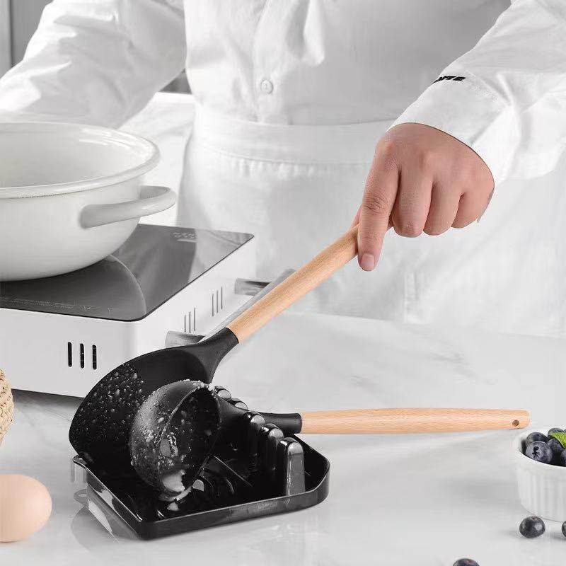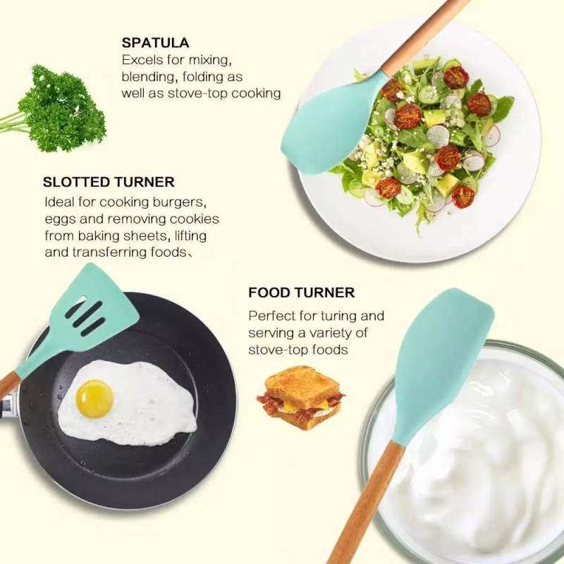 سرویس کفگیر Kitchen & Dining ساخته شده از با کیفیت ترین مواد سیلیکون با استاندارد FDA و بدون BPM ، دسته های چوبی از جنس بامبو و یک ظرف نگهدارنده از جنس پلاستیک می باشد. این سرویس از وزن متعادل و دیزاین منحصر بفردی برخوردار است که باعث میشود در دست گرفتن آن آسان و پخت و پز را راحت می کند. سیلیکون به کار رفته در این محصول ساخته شده از مواد غیر سمی، بی بو و سازگار با محیط زیست است. این مجموعه وسایل آشپز خانه در برابر درجه حرارت سرما تا 30- و گرما 230+ درجه سانتی گراد مقاومت دارد. انعطاف پذیری، رویه های نرم از خراشیدن و آسیب رساندن به ظروف شما جلوگیری می کند و همچنین باعث کاهش سر و صدا هنگام آشپزی می شود. این مجموعه متشکل از 11 عدد کفگیر ملاقه و یک عدد استند قاشق می باشد.