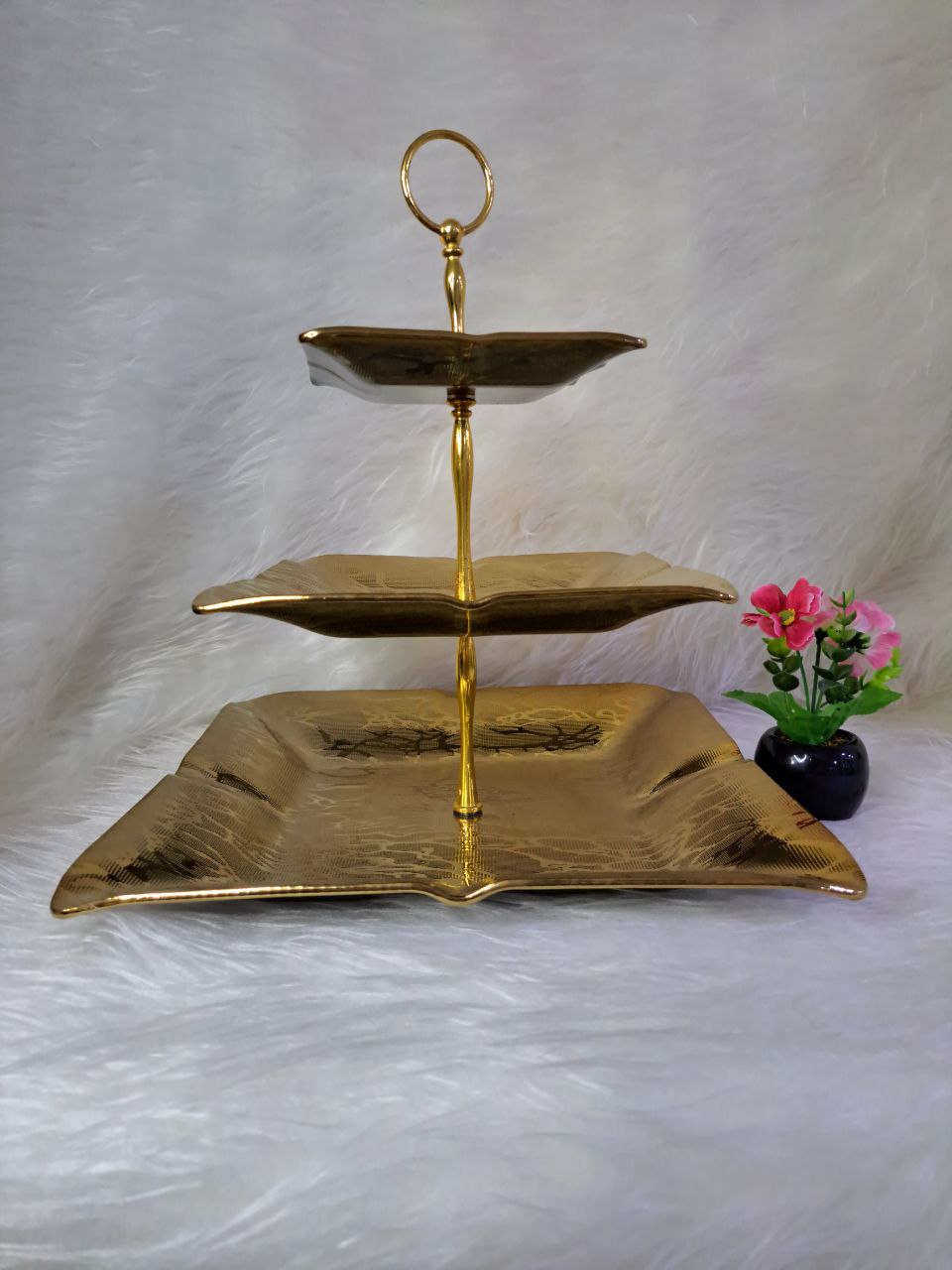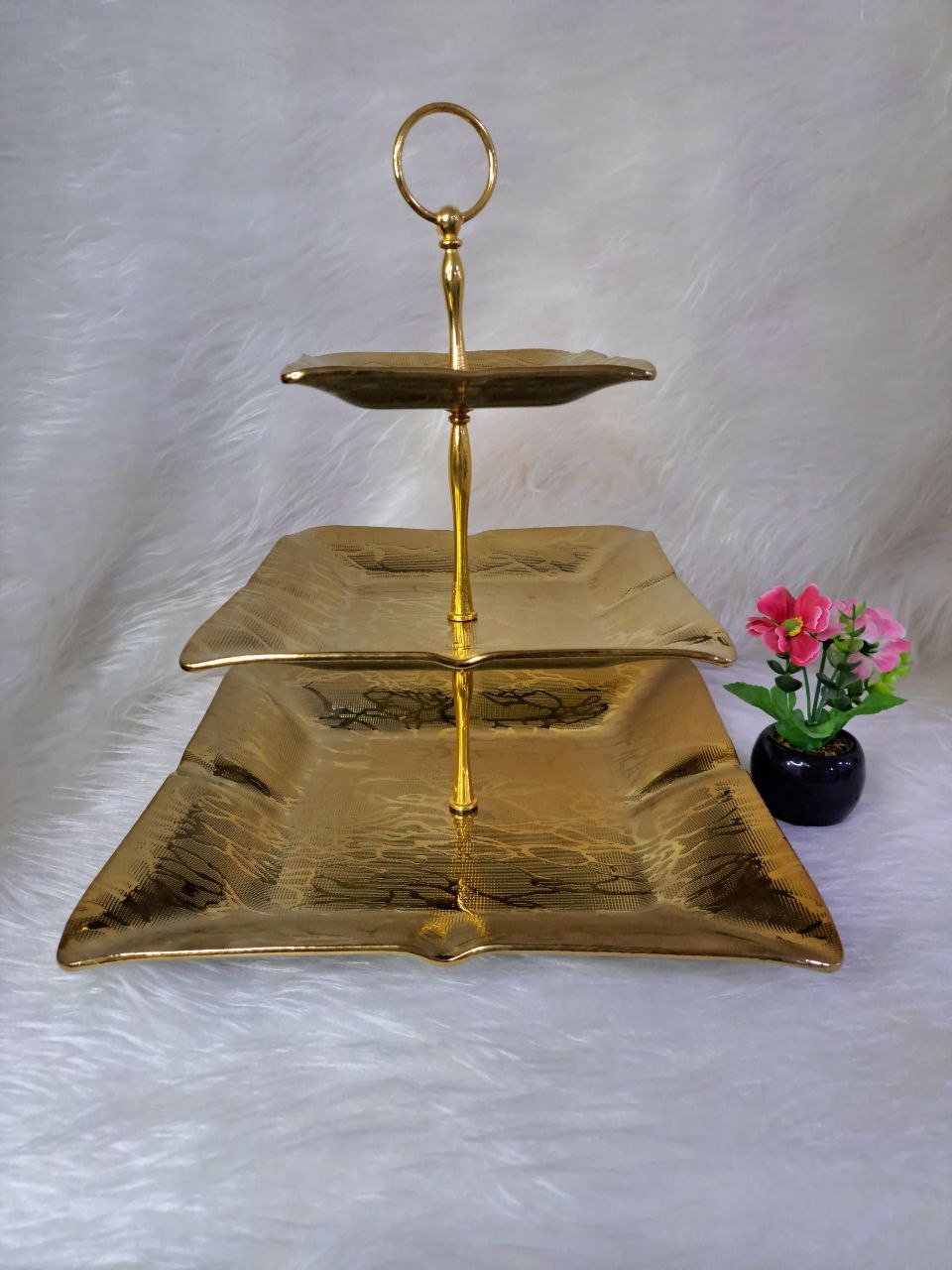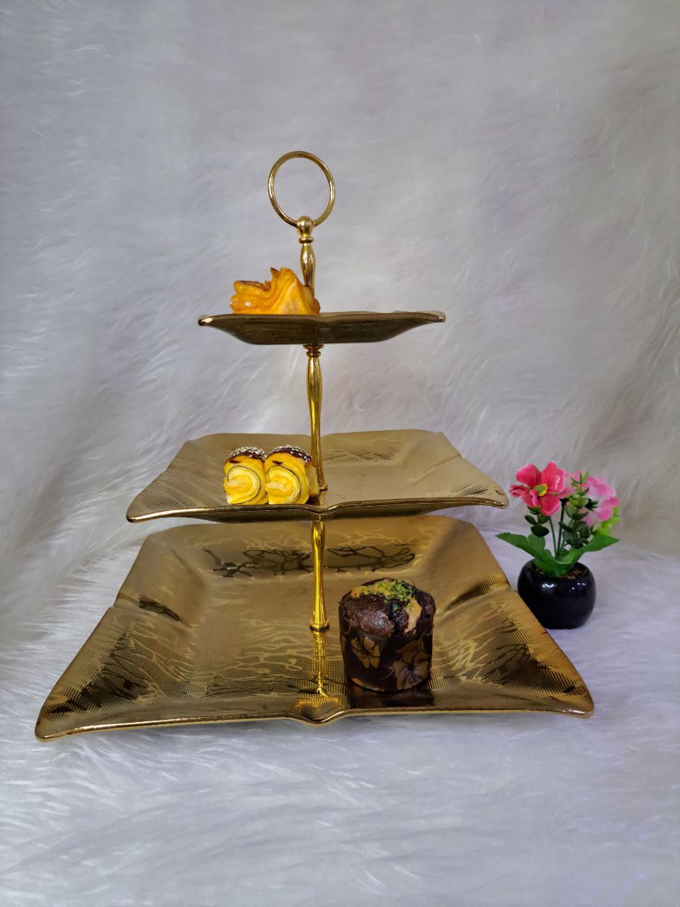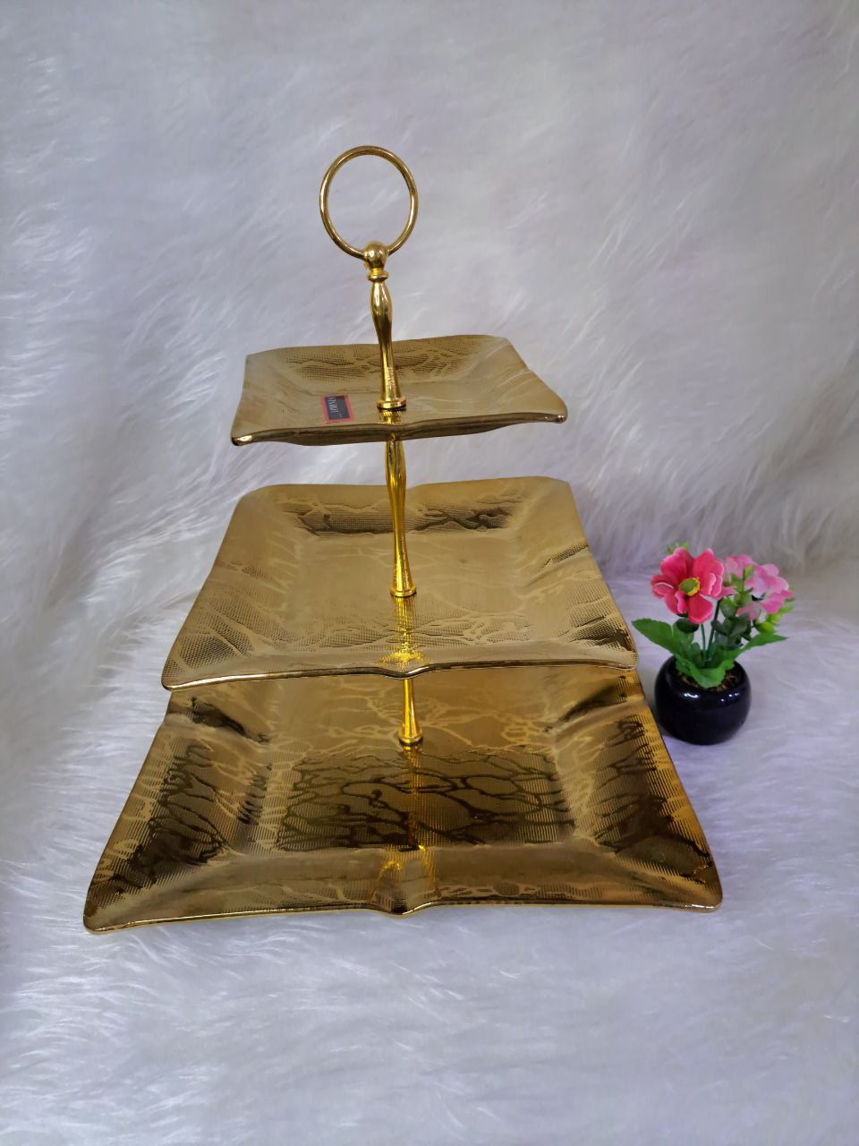 با قرار دادن این شیرینیخوری روی میز پذیرایی، چشم هر بینندهای به زیباییاش جلب خواهد شد. هرکدام از طبقات مربعیشکل این ظرف اندازهای متفاوت دارند و برای سرو انواع شیرینی معمولی و خامهای و حتی تنقلات و میوههای خشک قابلاستفاده هستند.