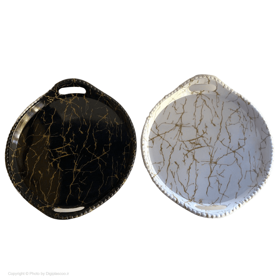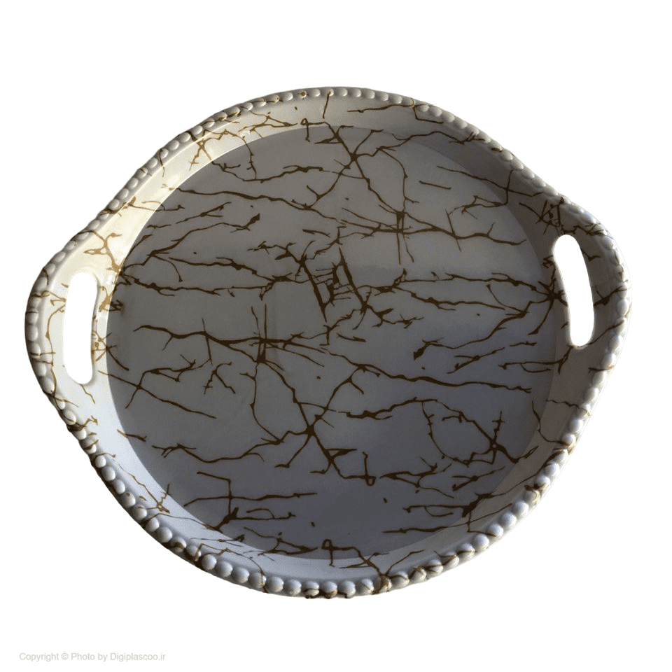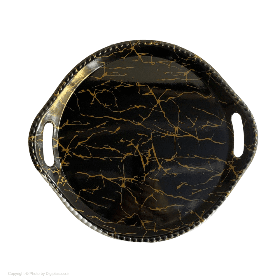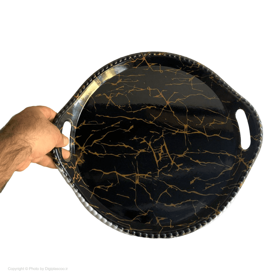 سینی گرد طرح سنگ مرمر با بدنهای از جنس ملامین و در دو رنگ سفید و مشکی است، که برای پذیرایی از میهمانان مناسب میباشد. سایز این سینی، بزرگ و با ابعاد طول: ۳۷، عرض: ۳۵ و ارتفاع: ۶ سانتی متر است.