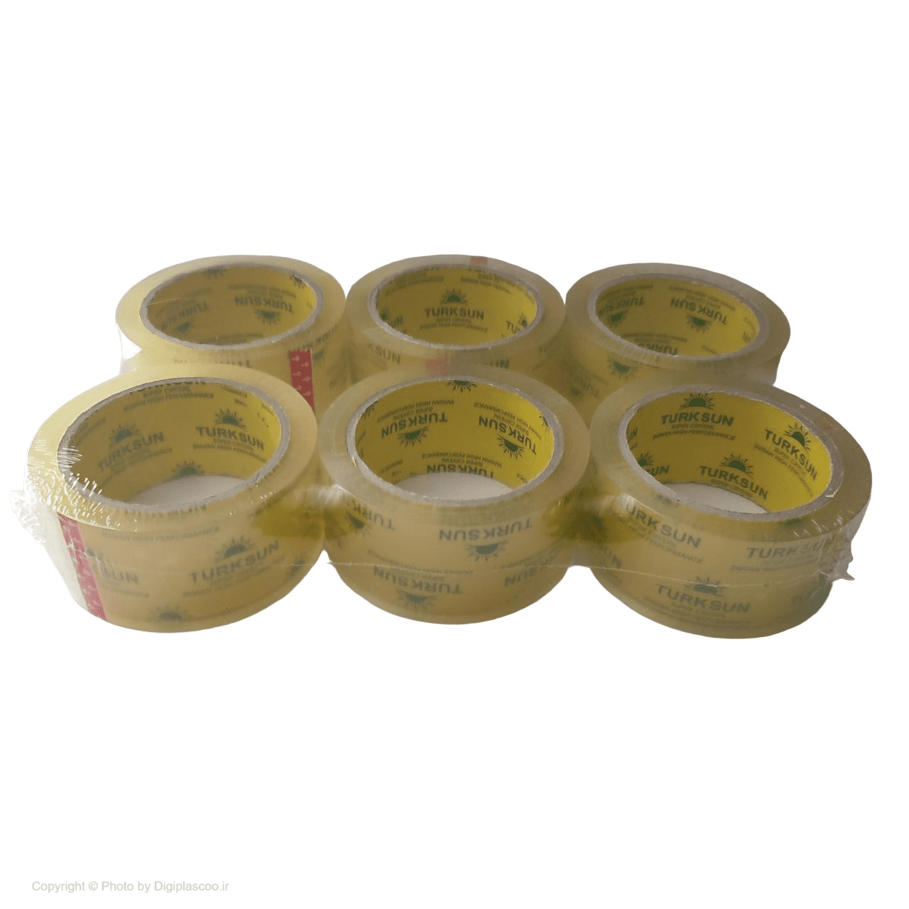 چسب پهن شفاف 5 سانتیمتری ترک سان - TURK SUN، با طول 82 متر تولید و عرضه میشود. این چسب به نامهای نوار چسب بستهبندی، نوار چسب کریستال، نوار چسب پهن کارتن، نوار چسب شفاف و شیشهای، چسب نواری پهن، نوار چسب سوپر کلییر و نوار چسب سلفونی نیز شناخته میشود. این محصول در بستهبندی محصولات غذایی، صنعتی، الکترونیکی، محصولاتی که در سردخانه بالای صفر نگهداری میشوند، و همچنین کارتنهایی با وزن متوسط به بالا، کارتنهای پرزدار و طرح دار یا دارای برجستگی های طراحی هستند، استفاده میشود.