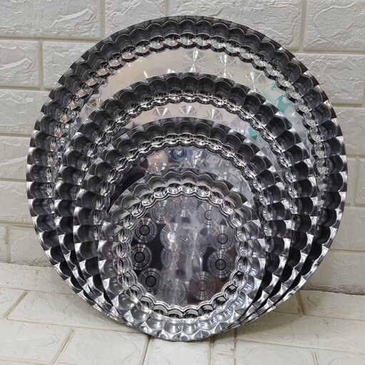 سینی طرح انگشتی ساخته شده از استیل میباشد که در استفاده دراز مدت هیچ گونه تغییر نمی کند این سینی را می توان به عنوان بشقاب برنج خوری و خورشت خوری و ...استفاده کرد.