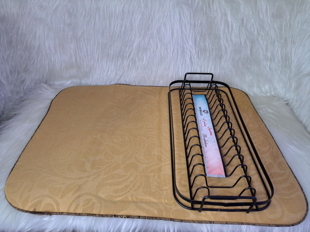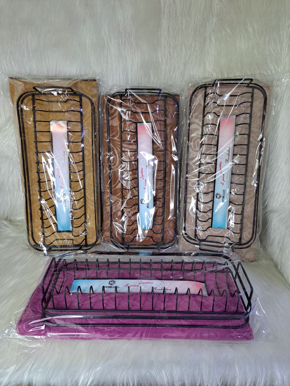 نمگیر از جنس حوله میکروفایبر میباشد و به هیچ عنوان رطوبت را منتقل نمیکند، جنس استند فلز روکش ضخیم و بادوام بدون زنگ میباشد. مناسب برای استفاده در منزل، کافه و رستوران ها.