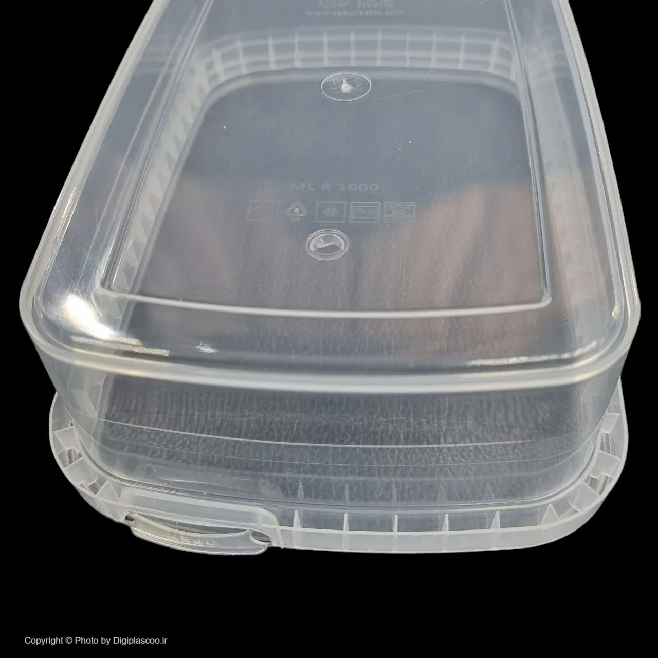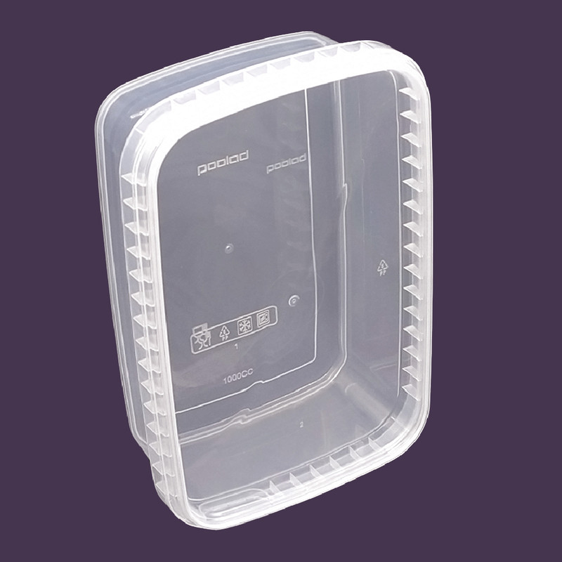 ظرف مدل مایکروویو 1000 سی سی از مواد اولیه مرغوب پلی پروپیلن (PP) تولید شده است. رنگ آن شفاف، طول آن 183 میلیمتر، عرض 120 میلیمتر و ارتفاع آن 56 میلیمتر میباشد. از قابلیتهای این ظرف میتوان به پلمپ شدن، امکان قرارگیری در مایکروویو، ماشین ظرفشویی و فریزر اشاره کرد. یکی از نکات کلیدی که این ظرف را مناسب بستهبندی مواد غذایی سرد و گرم میکند، عدم وجود ماده مضر BPA است. ظرف 1000 برای رستورانها بعنوان ظروف تک پرسی و برای محصولاتی مانند بستنی با وزن یک کیلوگرم استفاده میشود. ظرفیت حجمی این ظرف 1000 سی سی بوده، دارای ضخامت مناسب و استحکام کافی است.