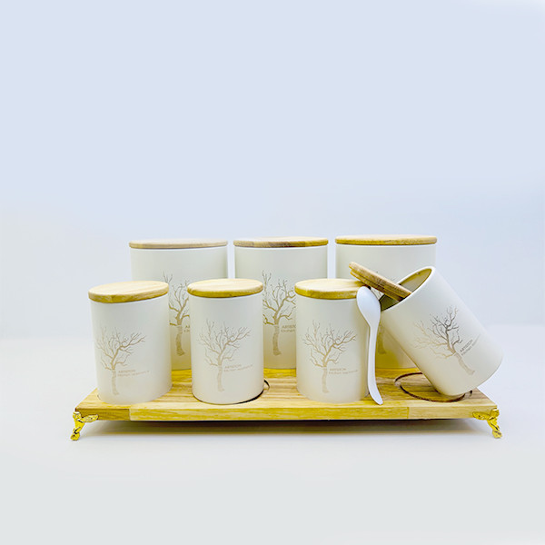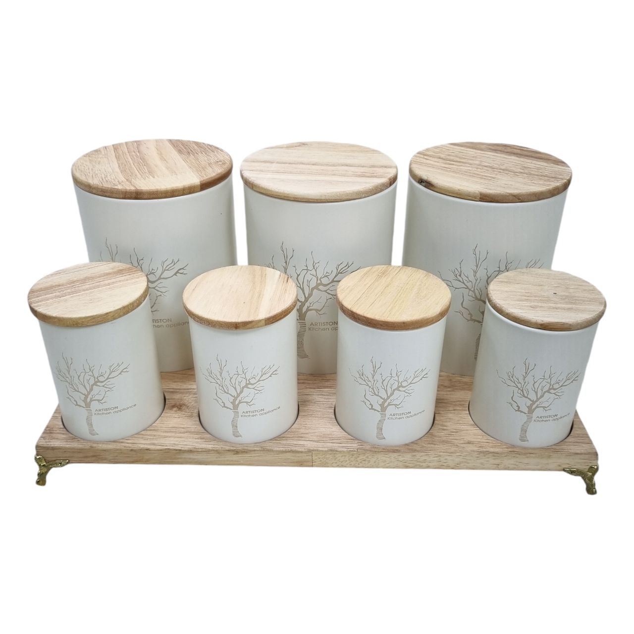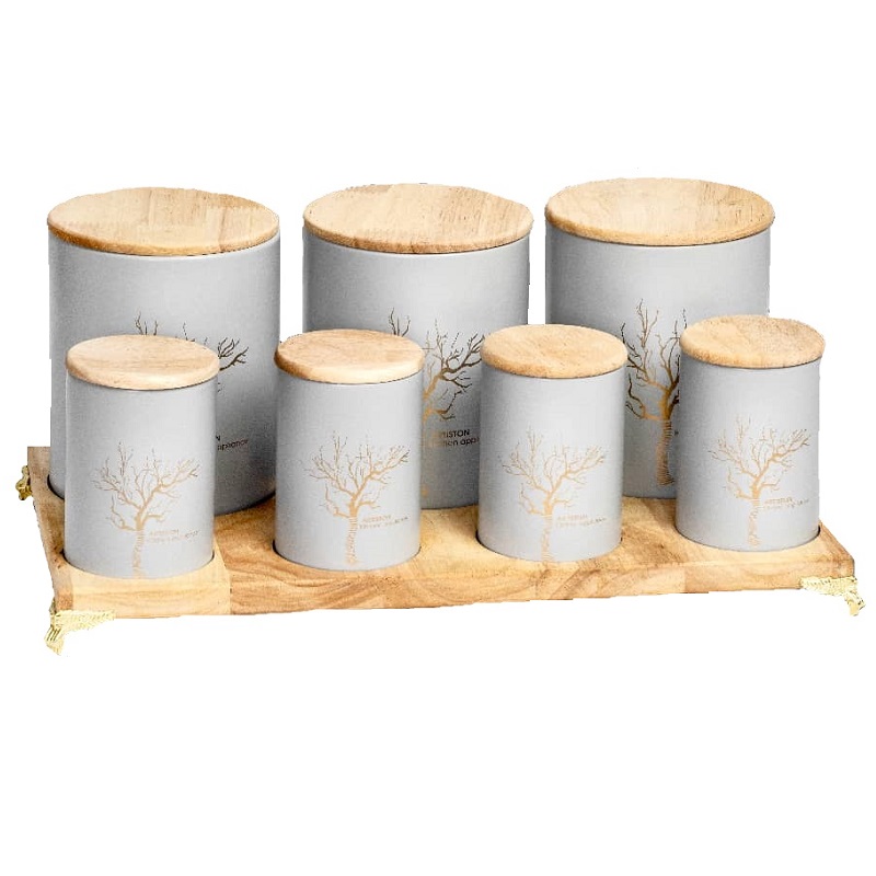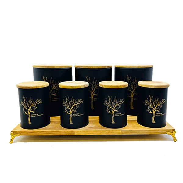 سرویس آشپزخانه پا سماوری 8 پارچه آرتیستون از جنس فلز محکم در برابر ضربه، گرما و رطوبت است. جنس درب این محصولات از چوب بامبو با مگنت است که به خوبی فیکس شده و مانع ورود هوا به ظروف می شود. سرویس آشپزخانه 8 پارچه آرتیسون از جنس فلزی است که شامل بانکه، جا ادویهای با درب چوبی و یک سینی مخصوص که به راحتی قابل نظافت و شست و شو میباشد.