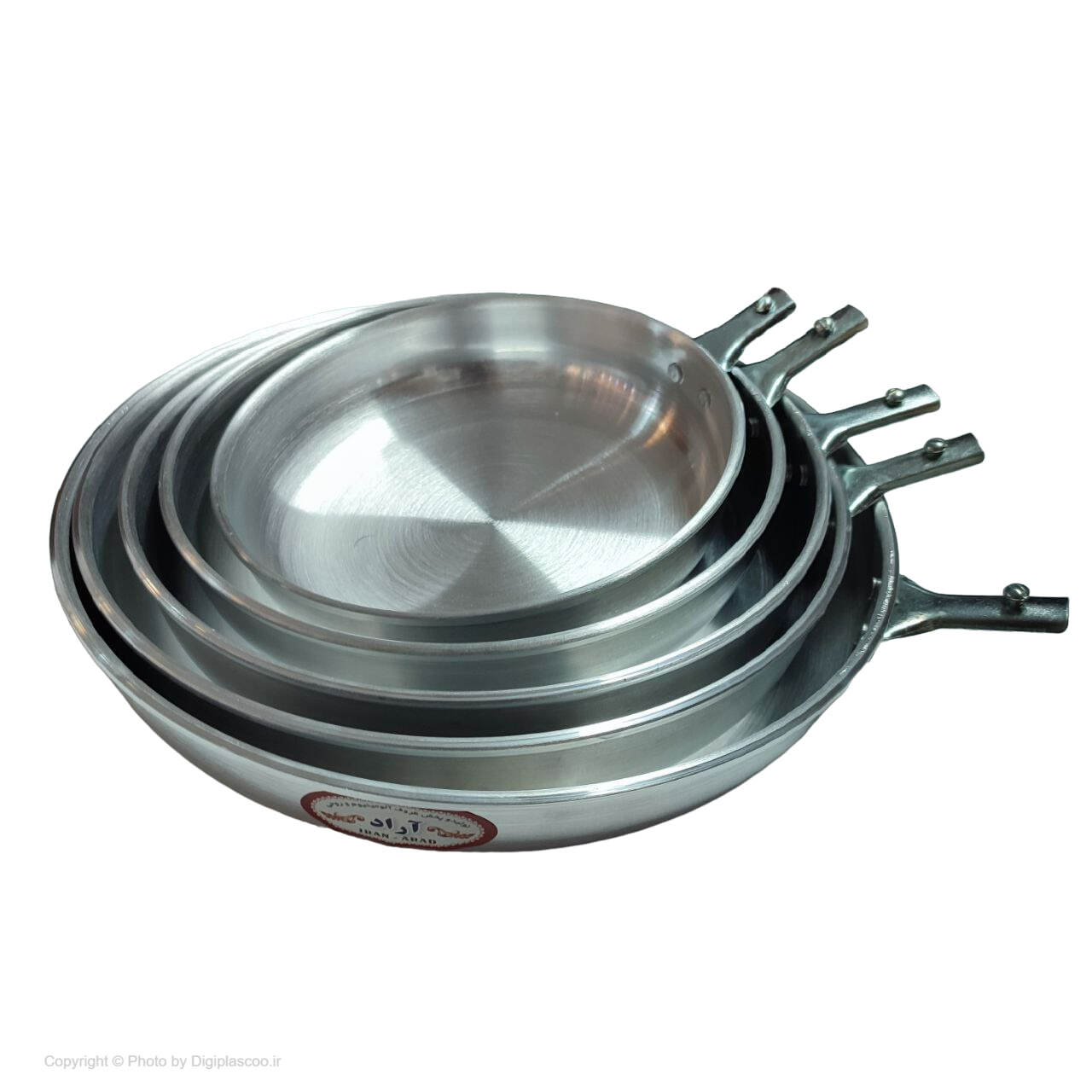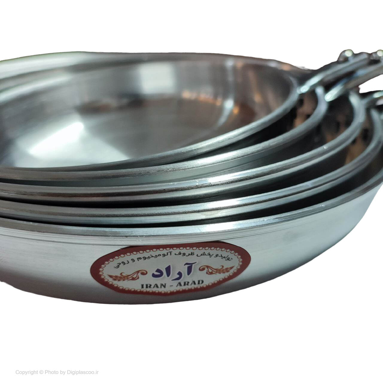 تابههای آراد از جنس آلومینیوم درجه یک ساخته شده و از کیفیت ساخت عالی برخوردار میباشد و شستشوی آن آسان است. برای هر یک دستهای از جنس پلاستیک با کیفیت تهیه شده است که باعث تسلط بیشتر در زمان پخت و جابجایی میشود.