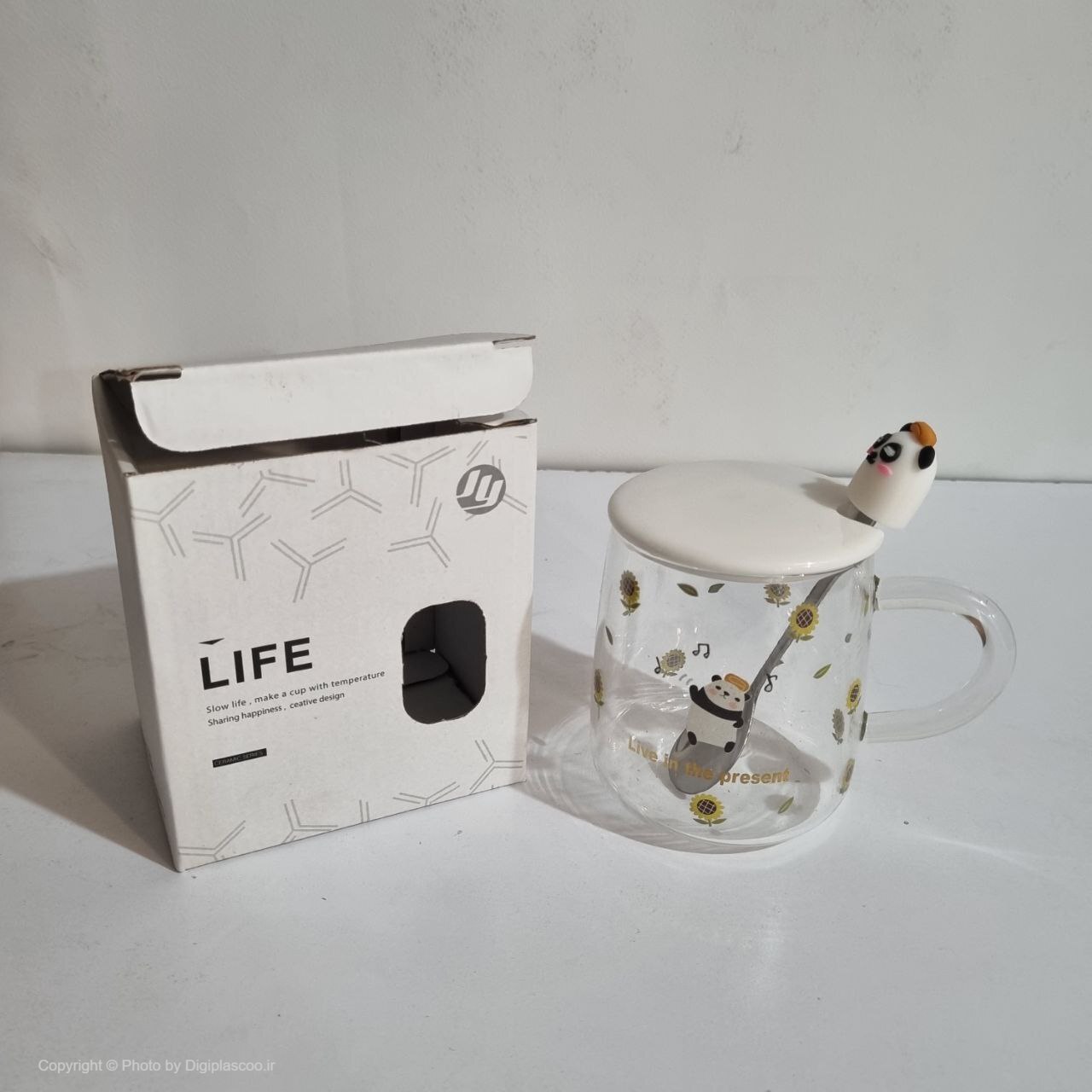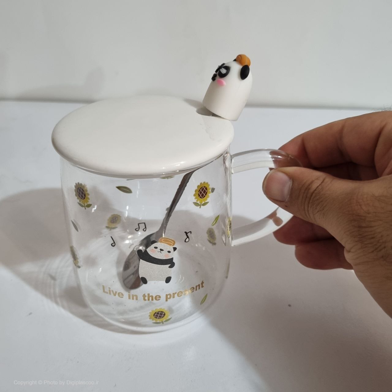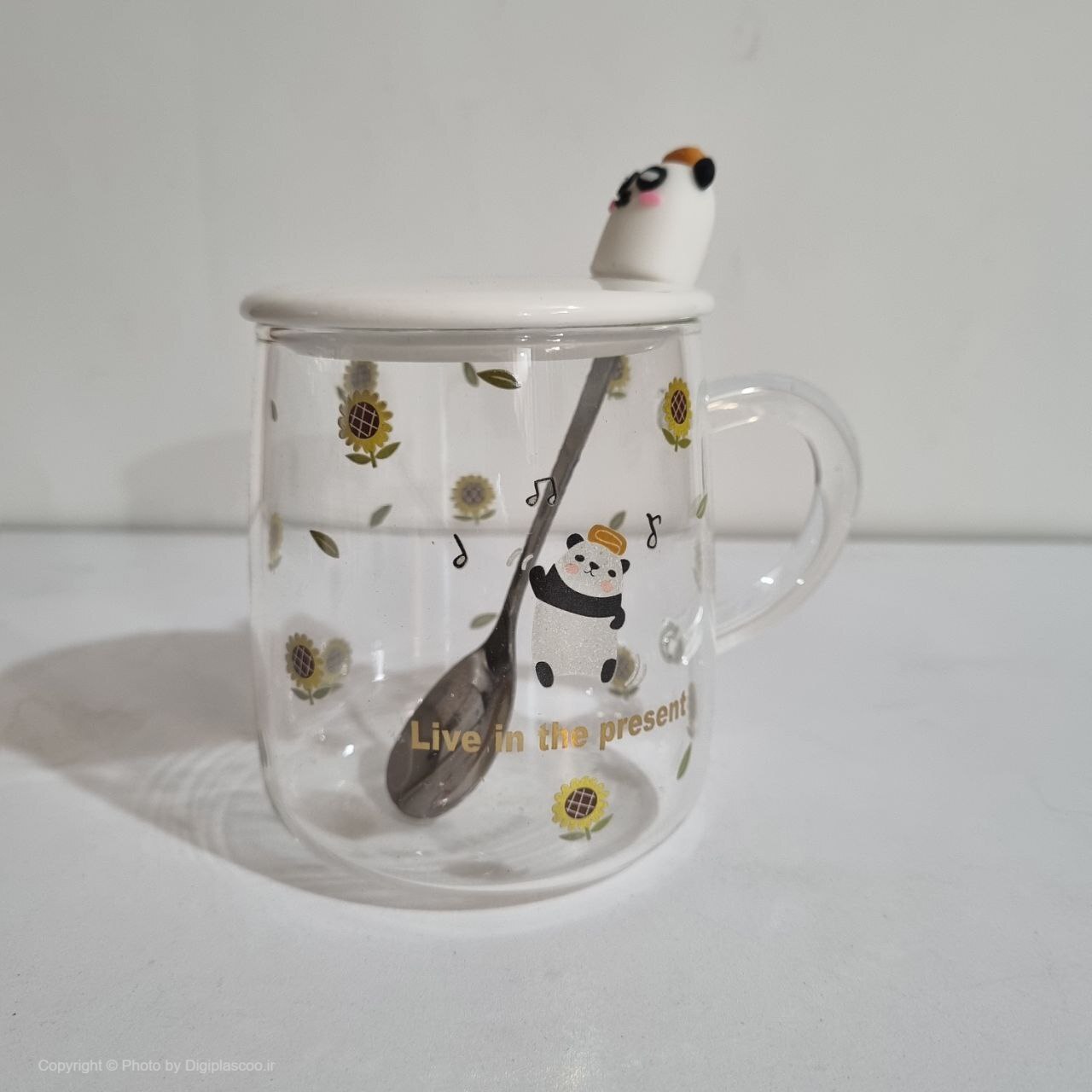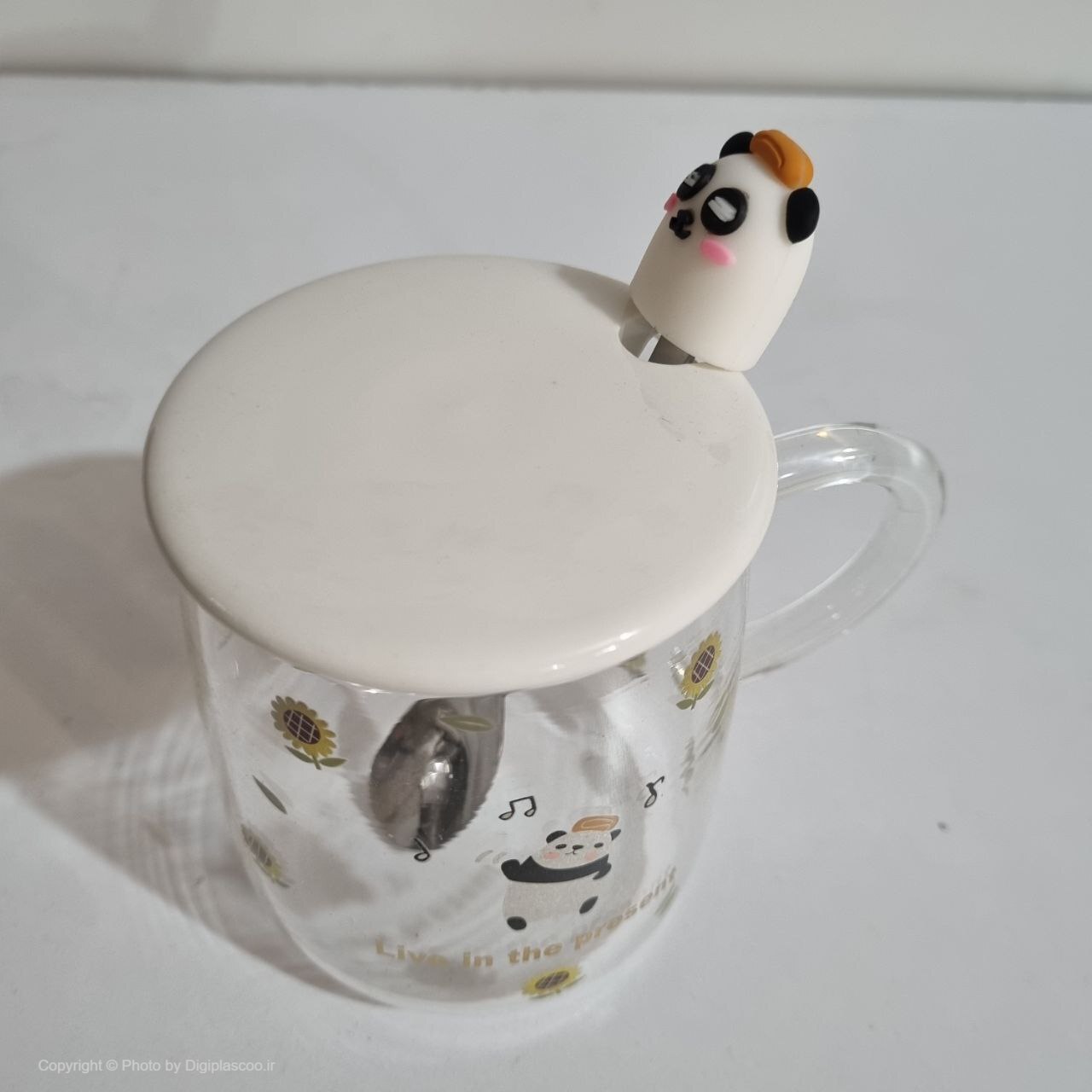 ماگ پاندای درب دار همراه باقاشق استیل مناسب برای هدیه دادن و استفاده روزمره شما