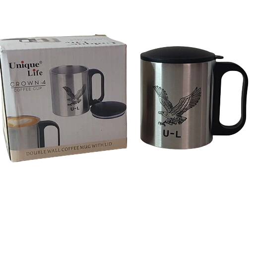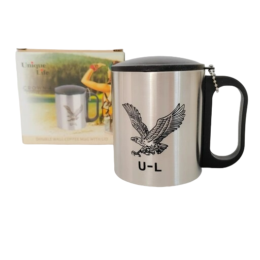ماگ استیل دو جداره درپوش دار مدل عقاب یونیک لایف، مناسب برای سفر، کوهنوردی و طبیعت گردی و...قابل استفاده برای انواع نوشیدنی های گرم و سرد، درب لیوان دارای واشر آب بندی برای جلوگیری از نشت مایعات به بیرون میباشد.