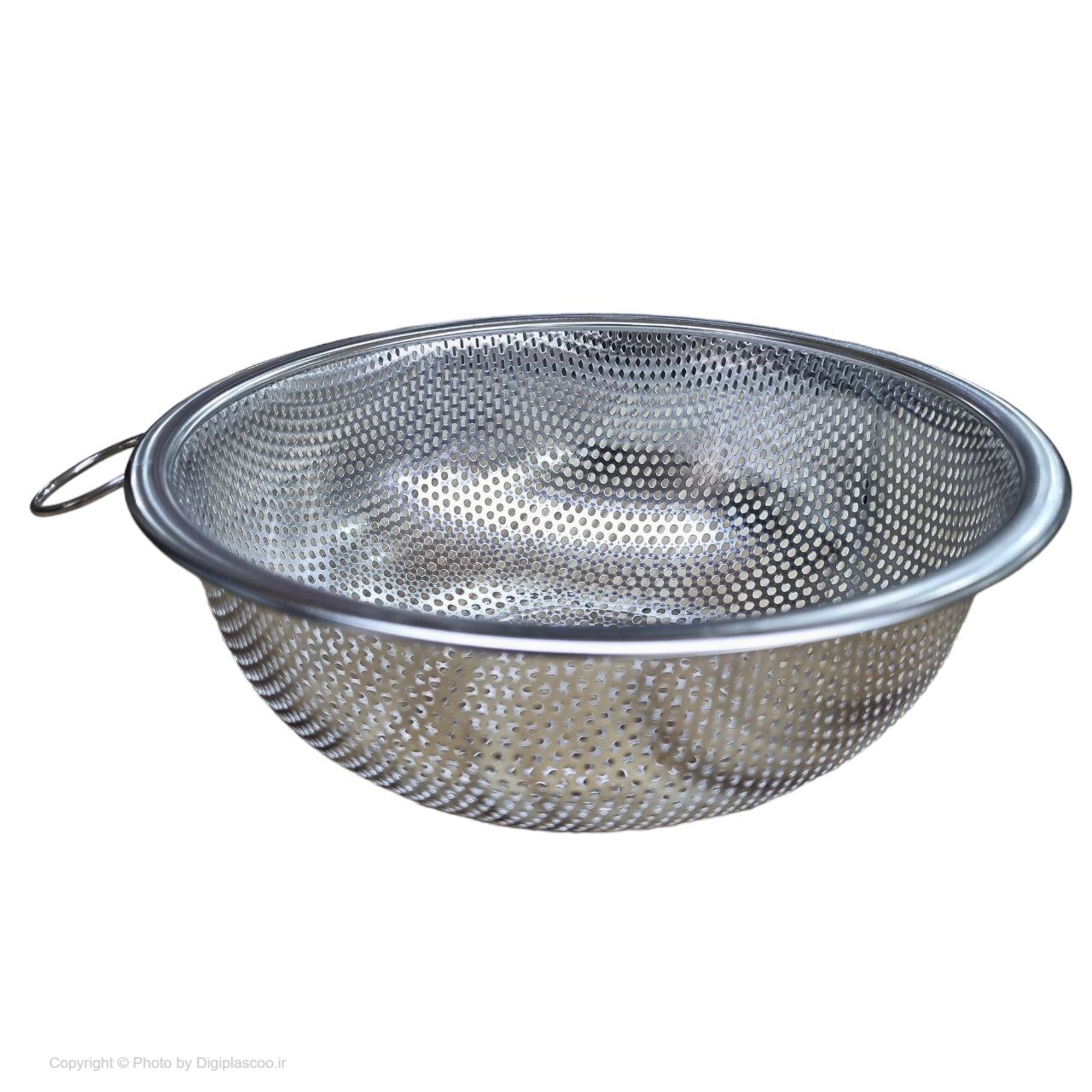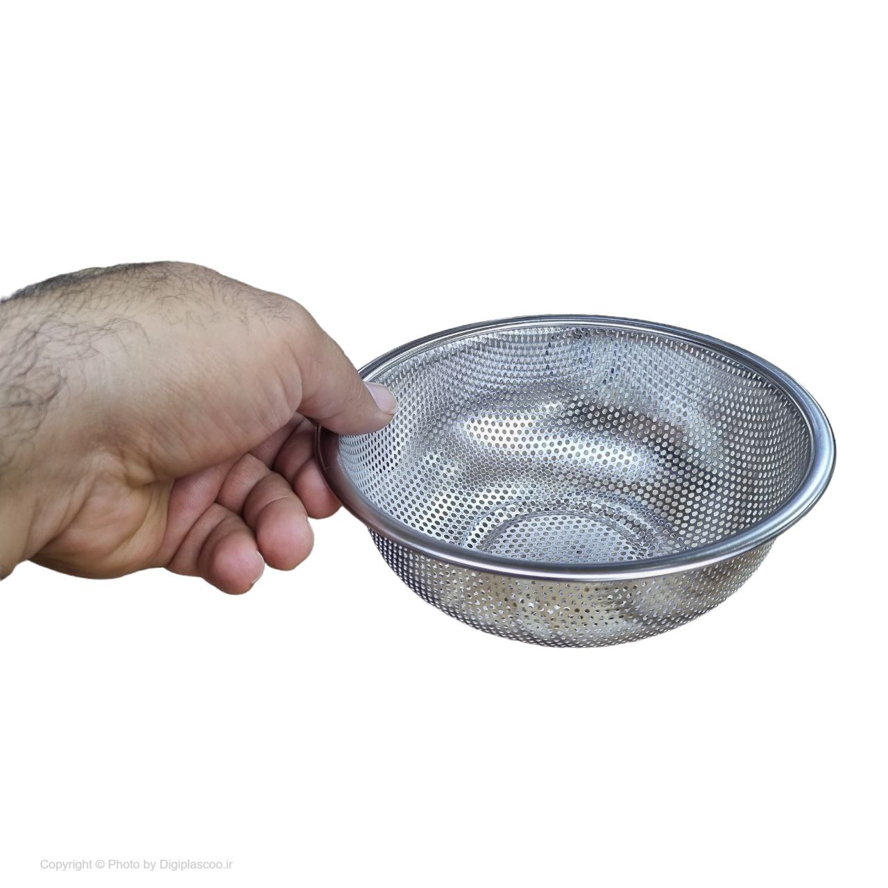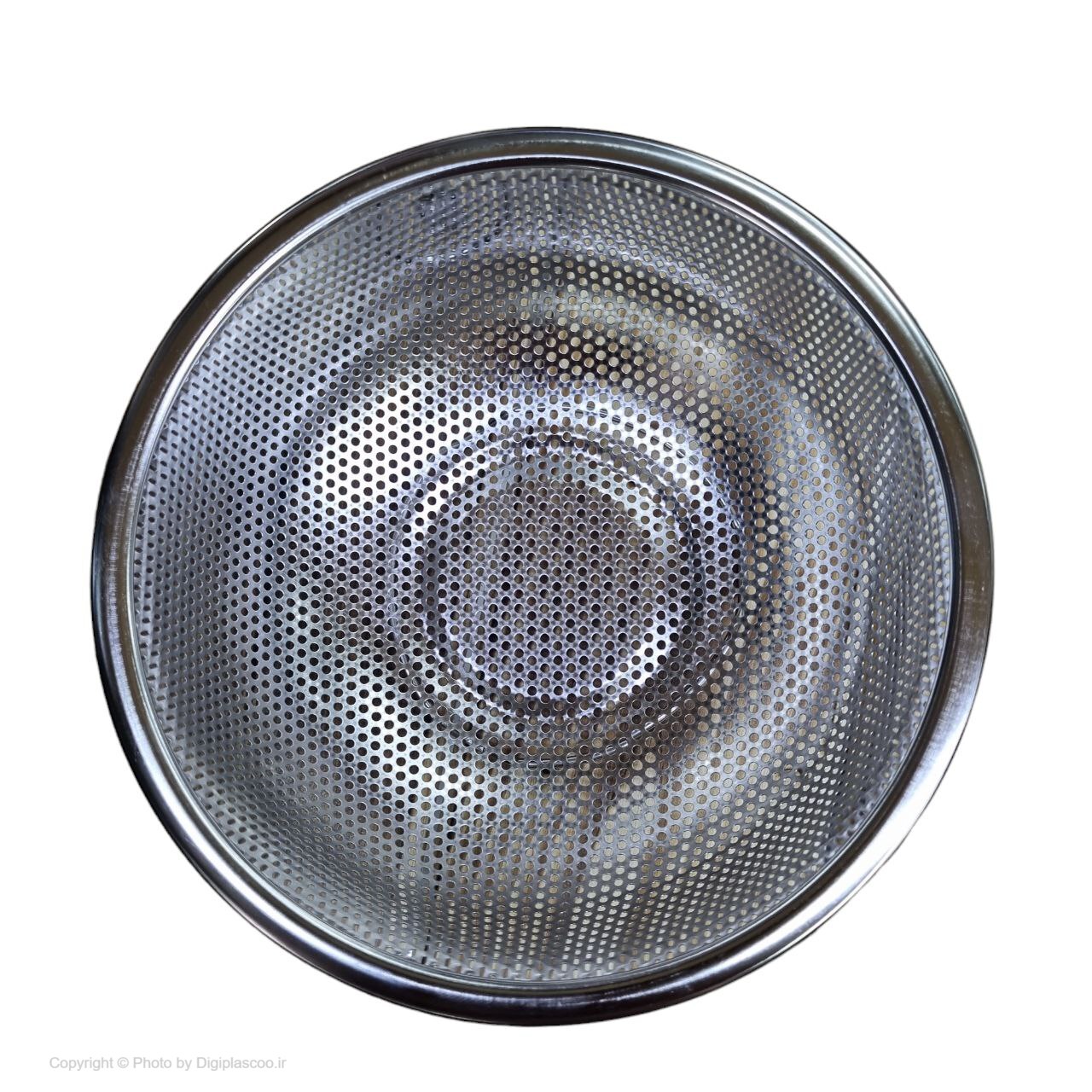 صافی (جار) از ابزارهای پرکاربرد آشپزخانه است که از طراحی قابلقبول و کیفیت مطلوبی بهره میبرد. این صافی فلزی که مناسب استفاده روی سینک است، از جنس استیل ساخته شده و دارای سوراخهایی با قطر ایده آل است که میتوان از آن برای صاف کردن موادی نظیر تفاله چای موجود در قوری یا موارد مشابه استفاده کرد. قطر دهانهی صافی 16.5 سانتیمتر و ارتفاع آن 7 سانتیمتر است. سطح داخل صافی و در محلهای سوراخ کاملا نرم و بدون زایده است و به راحتی تمیز میشود. این صافی همچنین یک پایهی فلزی دارد که نهتنها با افزایش ارتفاع ظرف به کارایی بیشتر آن کمک میکند بلکه با توجه به اینکه تنها در سه نقطه با کف سینک تماس دارد، از سرعت رد شدن مایعات از کف ظرف نیز نمیکاهد.