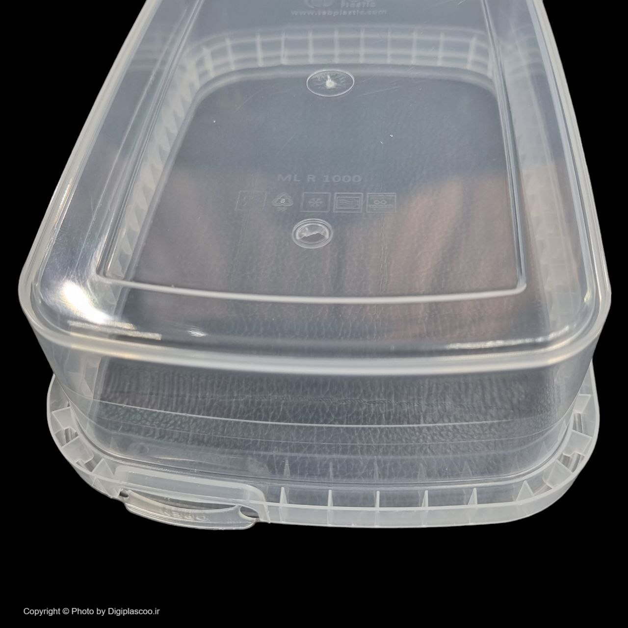 ظرف مایکروویو 1000 از مواد اولیه مرغوب پلی پروپیلن (PP) تولید شده است. رنگ آن شفاف، طول آن 183 میلیمتر، عرض 120 میلیمتر و ارتفاع آن 56 میلیمتر میباشد. از قابلیتهای این ظرف میتوان به دارا بودن نشان سیب سلامت، پلمپ شدن، امکان قرارگیری در مایکروویو، ماشین ظرفشویی و فریزر اشاره کرد. یکی از نکات کلیدی که این ظرف را مناسب بستهبندی مواد غذایی سرد و گرم میکند، عدم وجود ماده مضر BPA است. ظرف 1000 برای رستورانها بعنوان ظروف تک پرسی و برای محصولاتی مانند بستنی با وزن یک کیلوگرم استفاده میشود. ظرفیت حجمی این ظرف 1000 سی سی بوده، دارای ضخامت مناسب و استحکام کافی است.