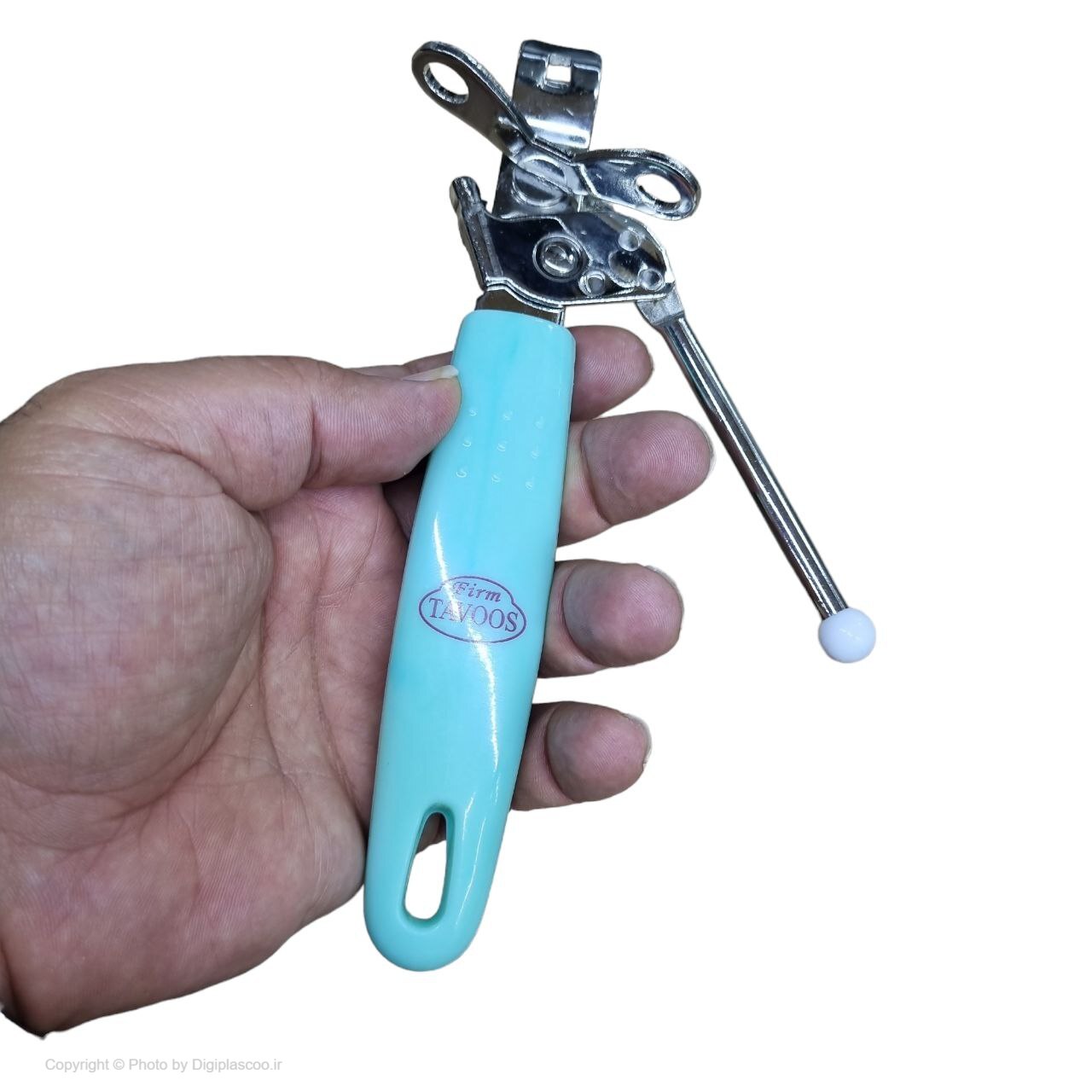 در بازکن «TAVOOS» (طاووس) مدل پیچشی یک محصول با طراحی خاص است که برای بازکردن انواع بطری و مخصوصا کنسرو قابل استفاده میباشد. با خرید این محصول آشپزخانه منزلتان را بهخوبی تجهیز خواهید کرد و در صورت خرید انواع کنسرو یا بطریهای نوشابه، بهراحتی درپوش آنها را با این ابزار کاربردی باز خواهید کرد. برای باز کردن درپوش بطری و انواع کنسروهای فلزی ماهی، لوبیا، کمپوت و... مناسب است. طول این در بازکن 18 سانتیمتر است که به راحتی در دست افراد مختلف بهخصوص خانمها جا میگیرد؛ علاوه بر این با اندازهی بهنسبت کوچکش فضای زیادی از کشوهای آشپزخانه را اشغال نخواهند کرد. این کالا دارای دستگیره پلاستیکی بوده و کیفیت مطلوبی دارد. این محصول به گونه ای طراحی شده که باز کردن در انواع قوطی کنسرو به راحتی هر چه تمام صورت میپذیرد .