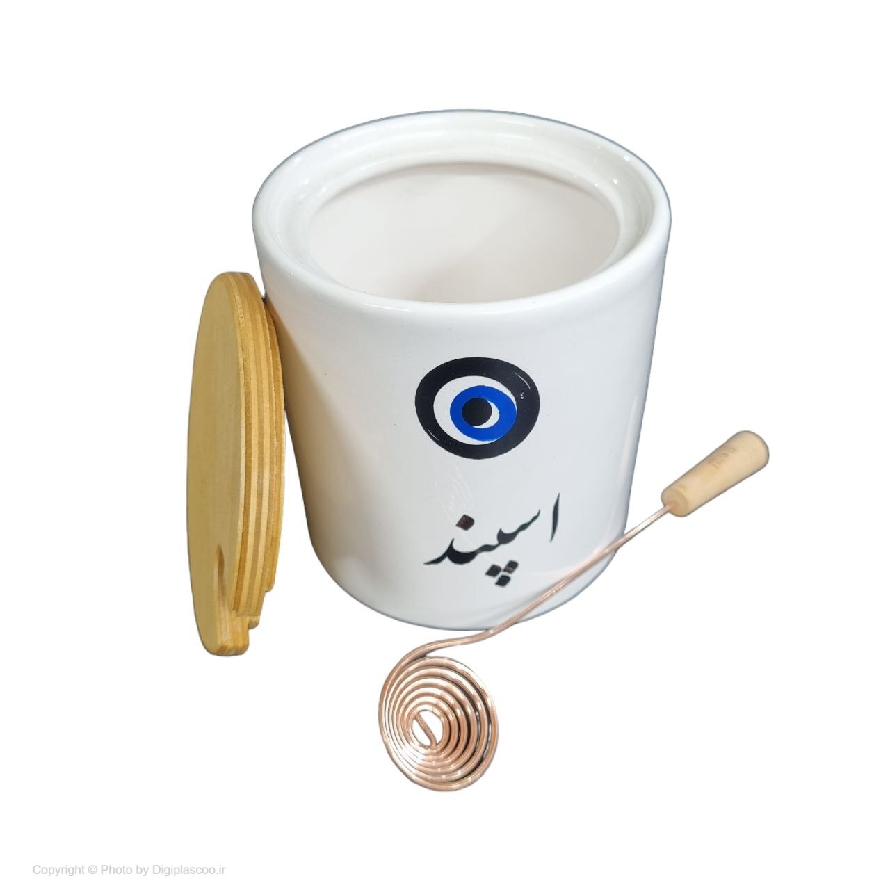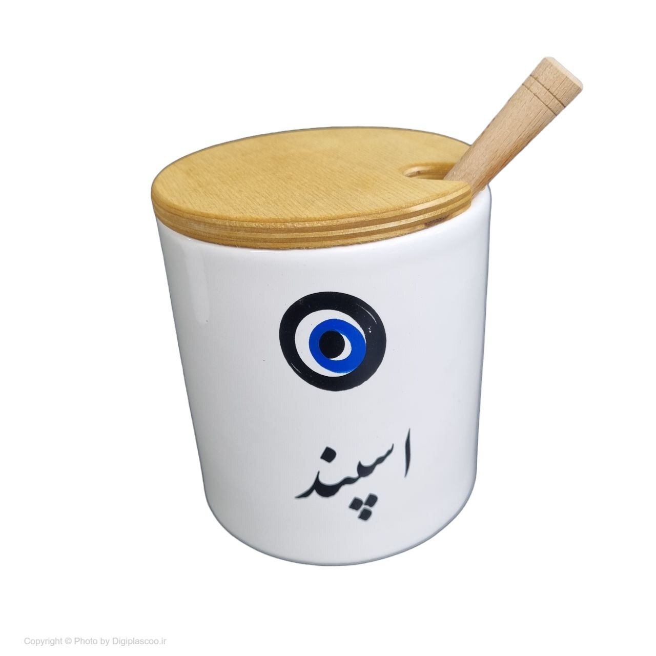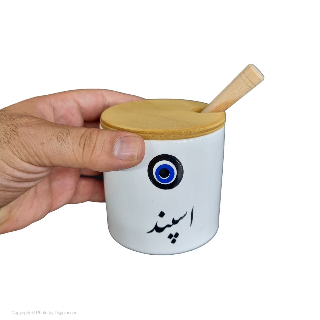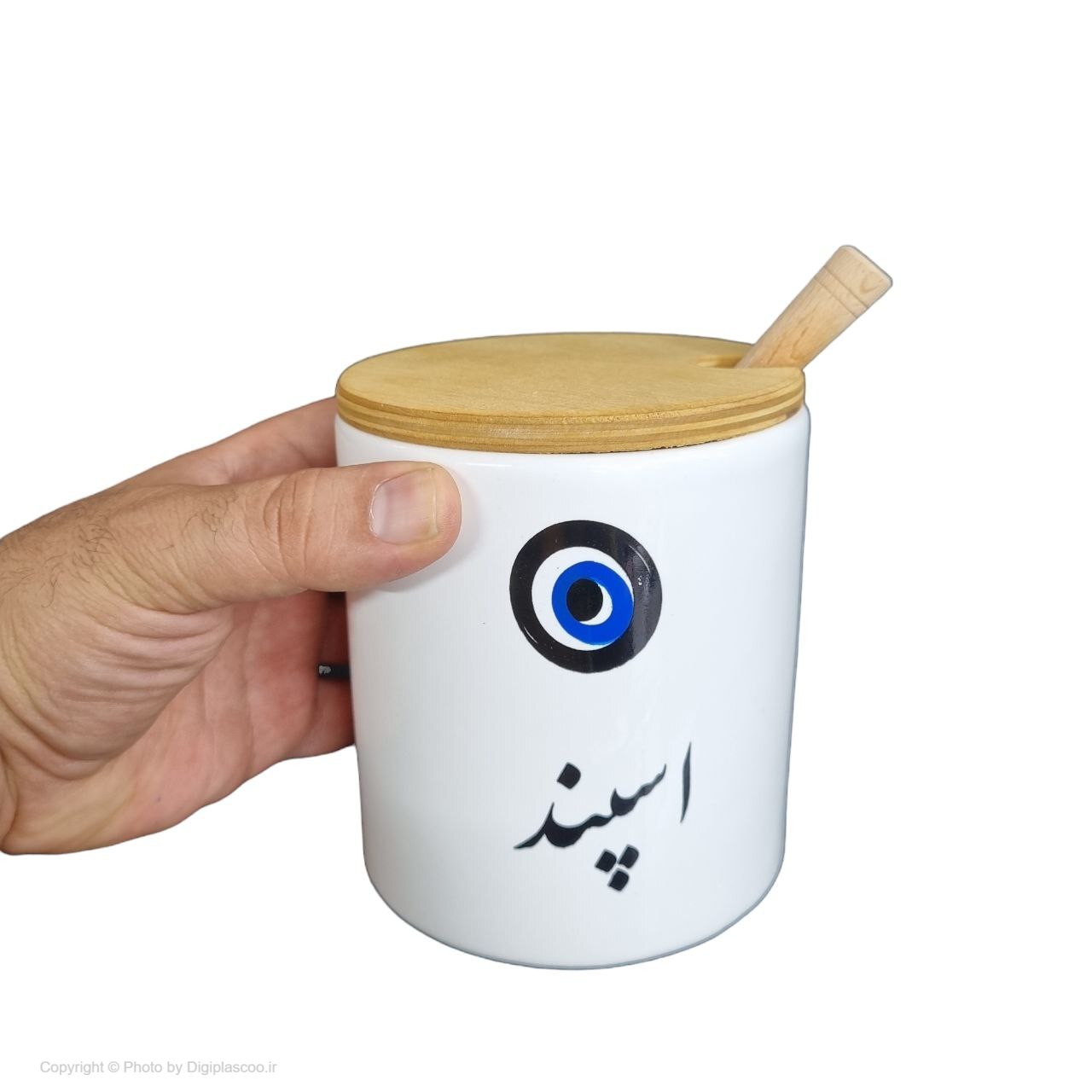 بانکه زیبای جا اسپندی مناسب برای نگهداری اسپند، دارای چاپ چشم نظر و کلمه اسپند به فارسی، جنس این محصول سرامیکی می باشد و قابل شستشو با دست و ماشین ظرفشویی میباشد.