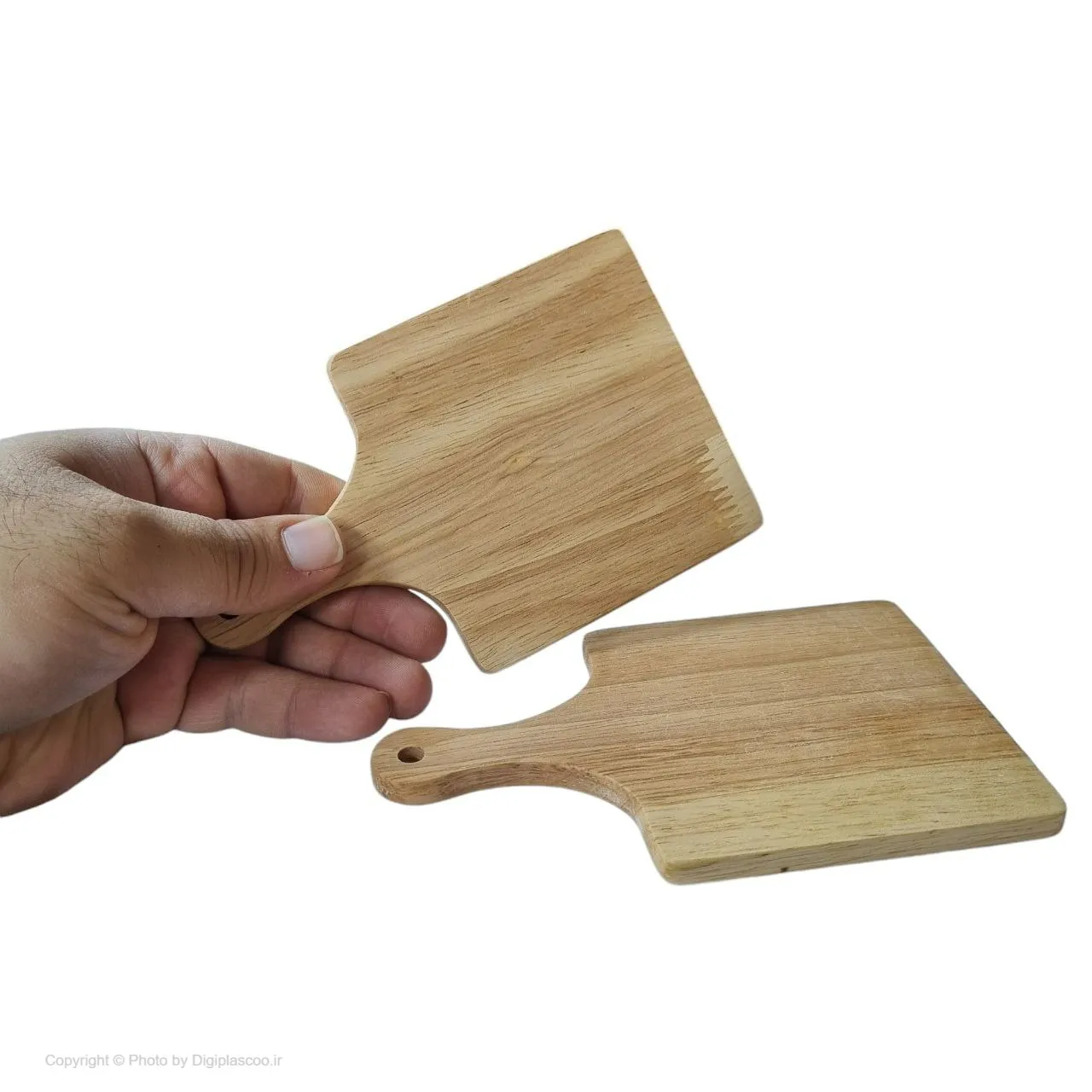 زیر لیوانی چوبی دسته دار ساخته شده از چوب 100% بامبو با کیفیت پوشش شده با روغن گیاهی مخصوص ظروف خوراکی چوبی. کاملا آب گریز و قابل شستشو با دست. امکان استفاده به عنوان تخته سرو کوچک