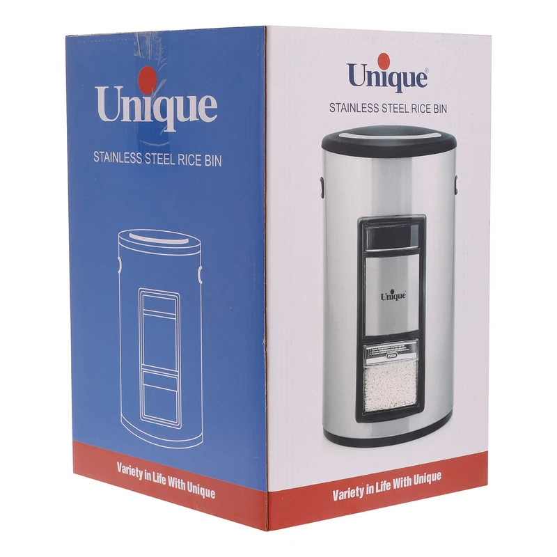برای نگهداری حبوباتی مانند برنج که معمولا در مقادیر بیشتری نسبت به سایر مواد غذایی انبار میشوند، بهترین ظرف نگهداری سطلهای مخصوص برنج اند. سطل برنج 10 کیلویی استیل یونیک کد 4340 ساخته شده از استیل ضد زنگ با کیفیت و ضد لک که به راحتی با یک پارچه نمدار تمیز میشود. بدنه و در سطل به خوبی عایق شده و امکان ورود حشرات به آن وجود ندارد. ویژگی مهم این سطل داشتن یک پیمانه برای برداشتن برنج بدون باز کردن درب بالایی است. برای برداشتن برنج کافی است پیمانه را در جای خودش قرار دهید تا به طور خودکار مقدار مشخصی از برنج داخل آن بریزد. همچنین از پنجره روی بدنه میتوانید مقدار برنج باقی مانده را مشاهده کنید.
