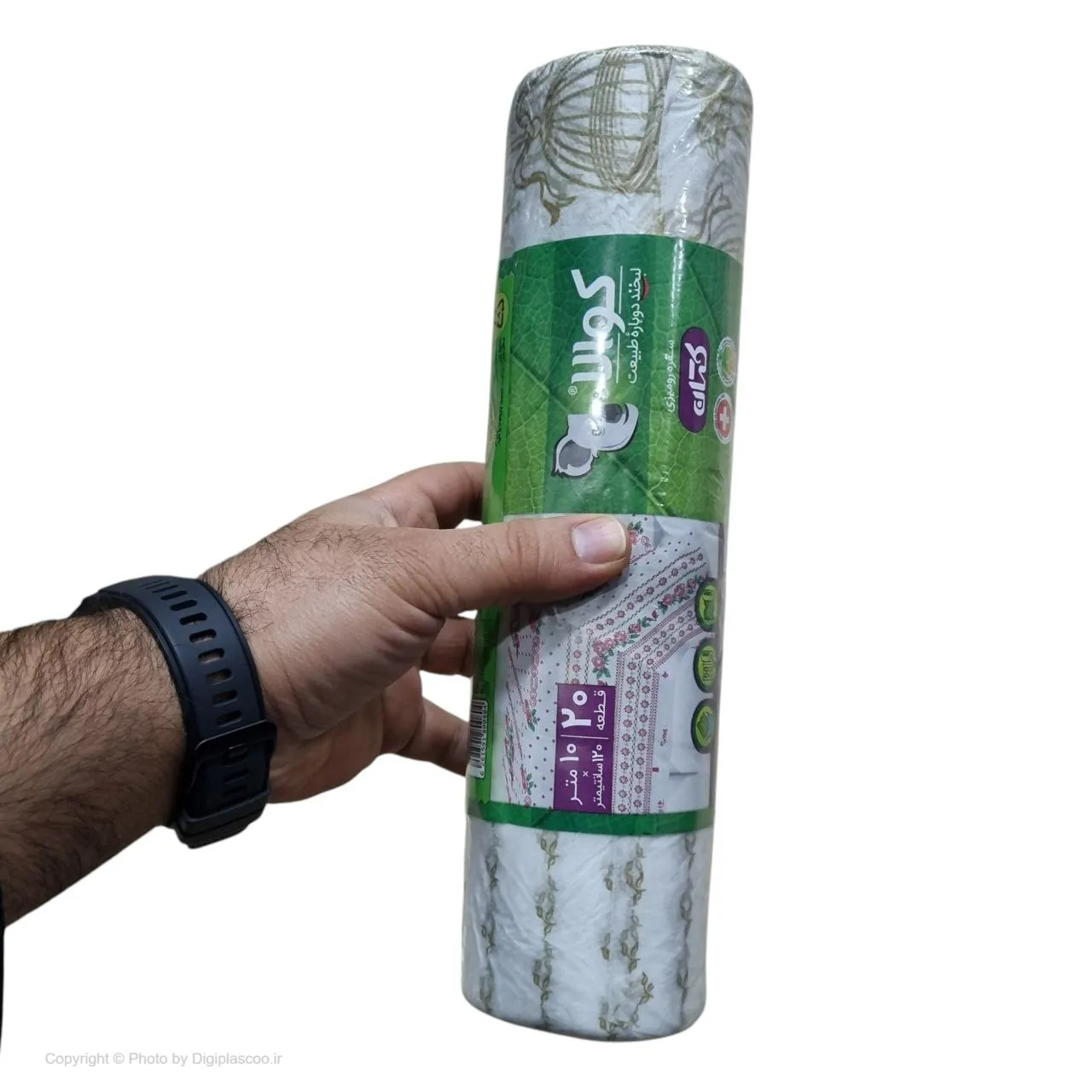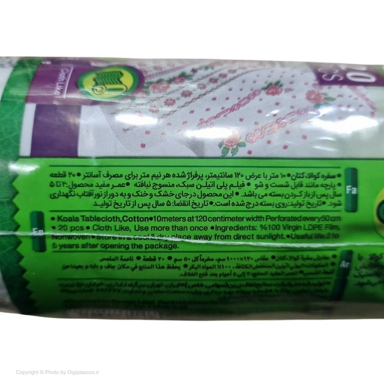 سفرهی یکبارمصرف «Koala» رول 10متری کتان با طراحی زیبایی که دارد، به برگزاری هرچه بهتر مراسم شما کمک خواهد کرد. سفره یکبار مصرف کوالا مدل کتان با توجه به جنس مشابه کتان و پارچه ای که دارد متمایز از محصولات مشابه در بازار است . این سفره بهواسطهی منسوج نبافته و فیلم پلی اتیلین که از آن ساخته شده است، مقاومت بالایی دارد و مانع از نفوذ مایعات شده و فرش شما را از خطر خیسشدن در امان نگه میدارد. این محصول بهصورت پرفراژدار طراحی شده و شامل 20 تکهی 50 × 120 سانتیمتری است که بهراحتی از بخش پرفراژها جدا میشود. حتی برای نفرات زیاد میتوانید سفره را یکسره بیندازید.